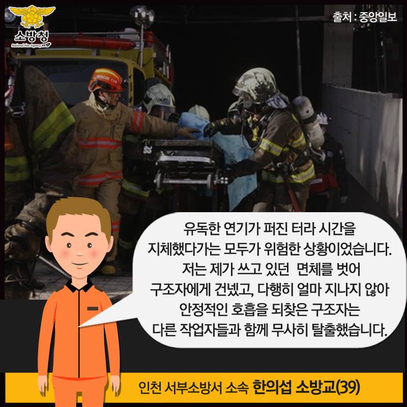 구조자에게 호흡보조용마스크를 벗어준 소방관 이야기 3