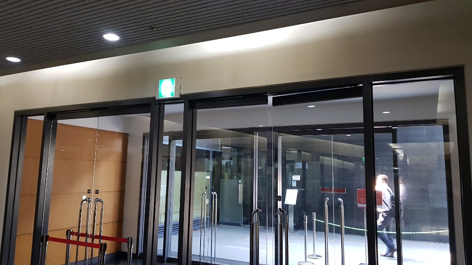 다름이 아니라 건물 냉난방 효율을 높이기 위해 출입구에 방풍실이 설치 되어있는데요