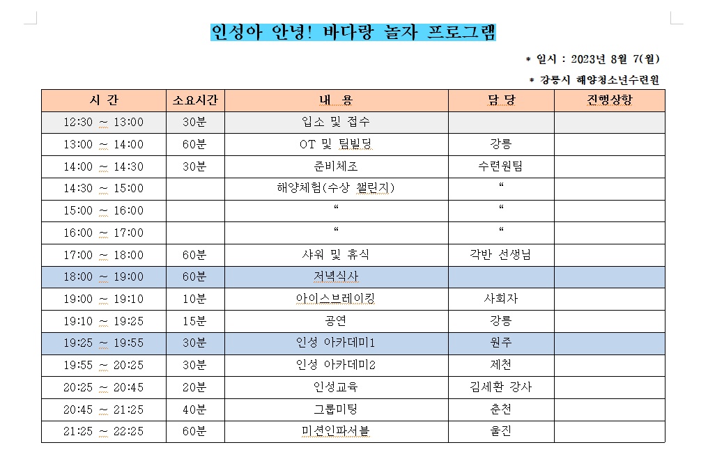 장 소 : 강릉시 청소년 해양수련원