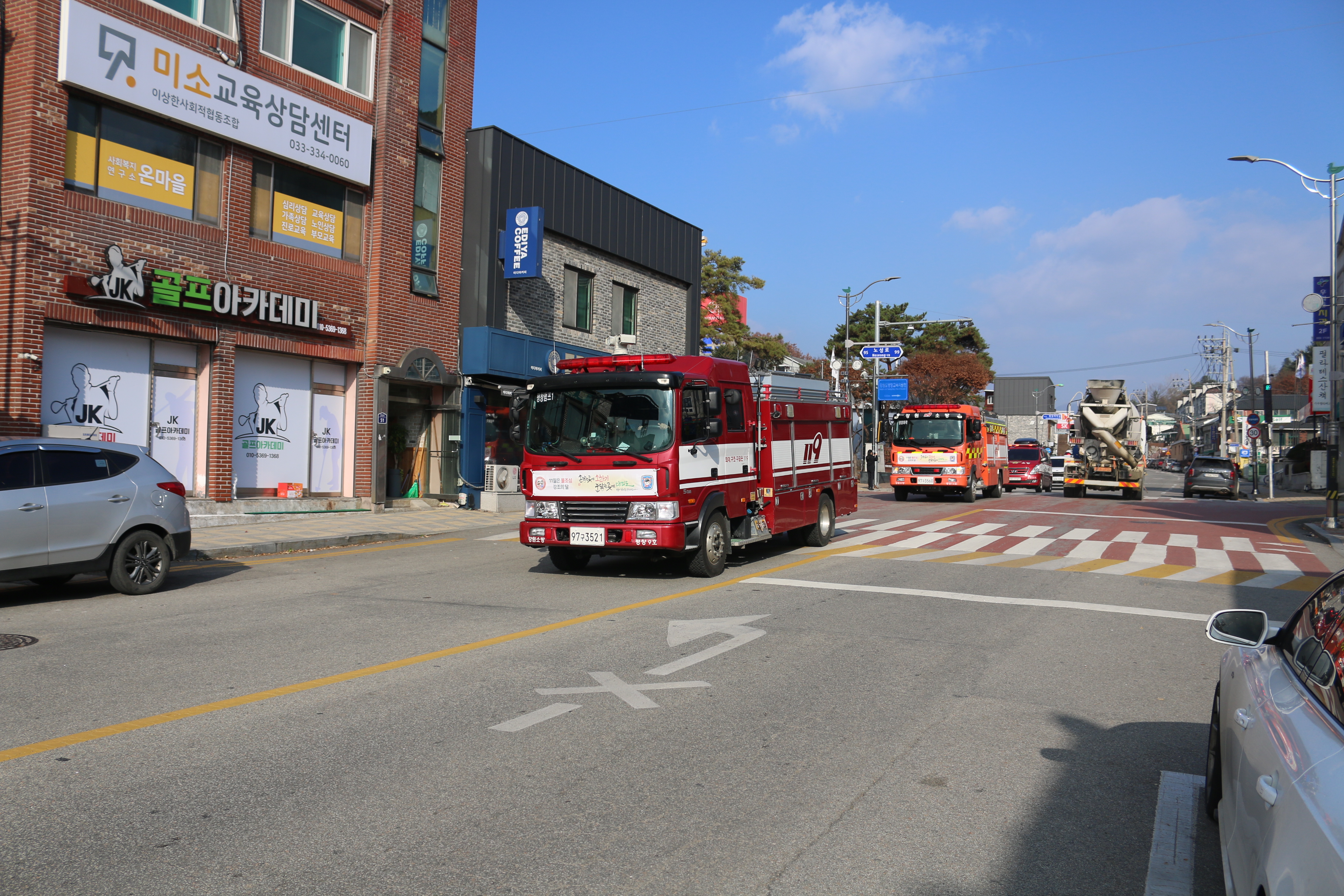 평창소방서, 불조심 강조의 달‘길 터주기’소방차 퍼레이드 개최