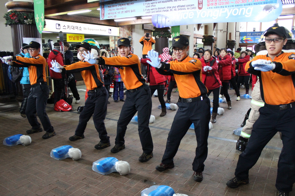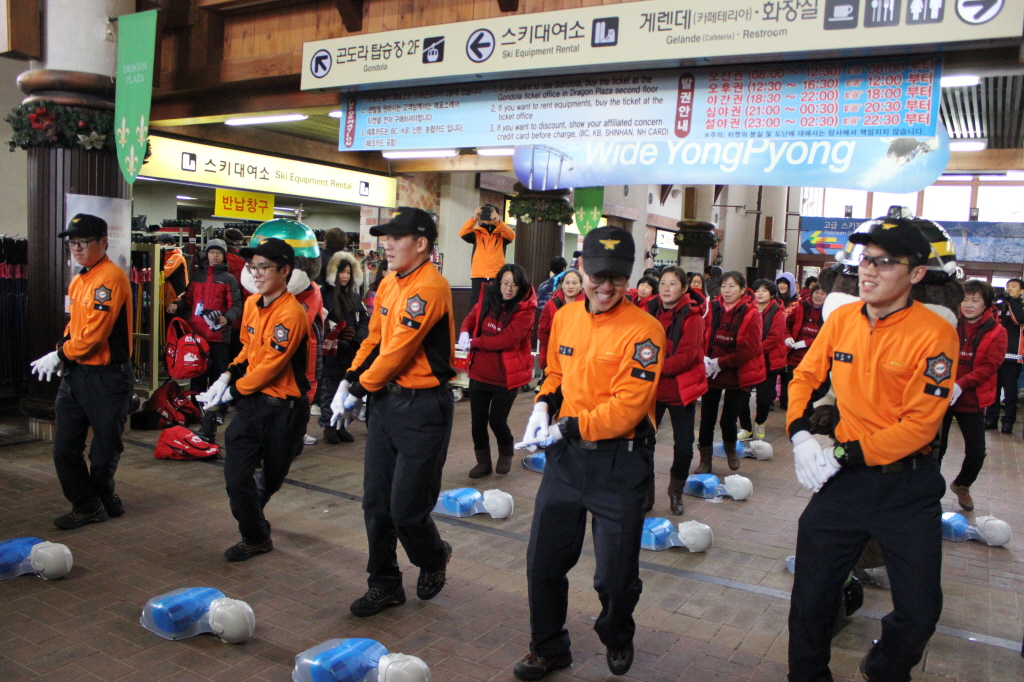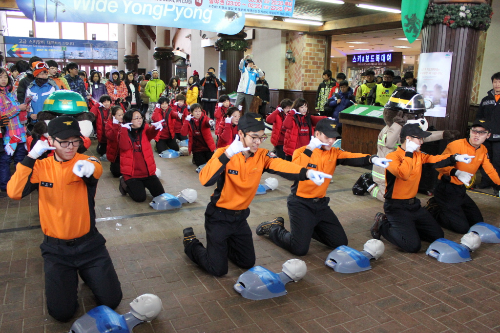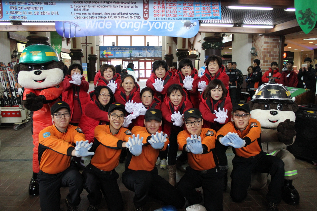 ◇ 평창소방서(서장 김남숙)는 13일 오전 대관령면 용평리조트 드래곤프라자 1층, 층에서 소방10, 대관령여성의용소방대원 10명과 함께“국민참여 플래쉬 몹”이벤트를 실시했다.