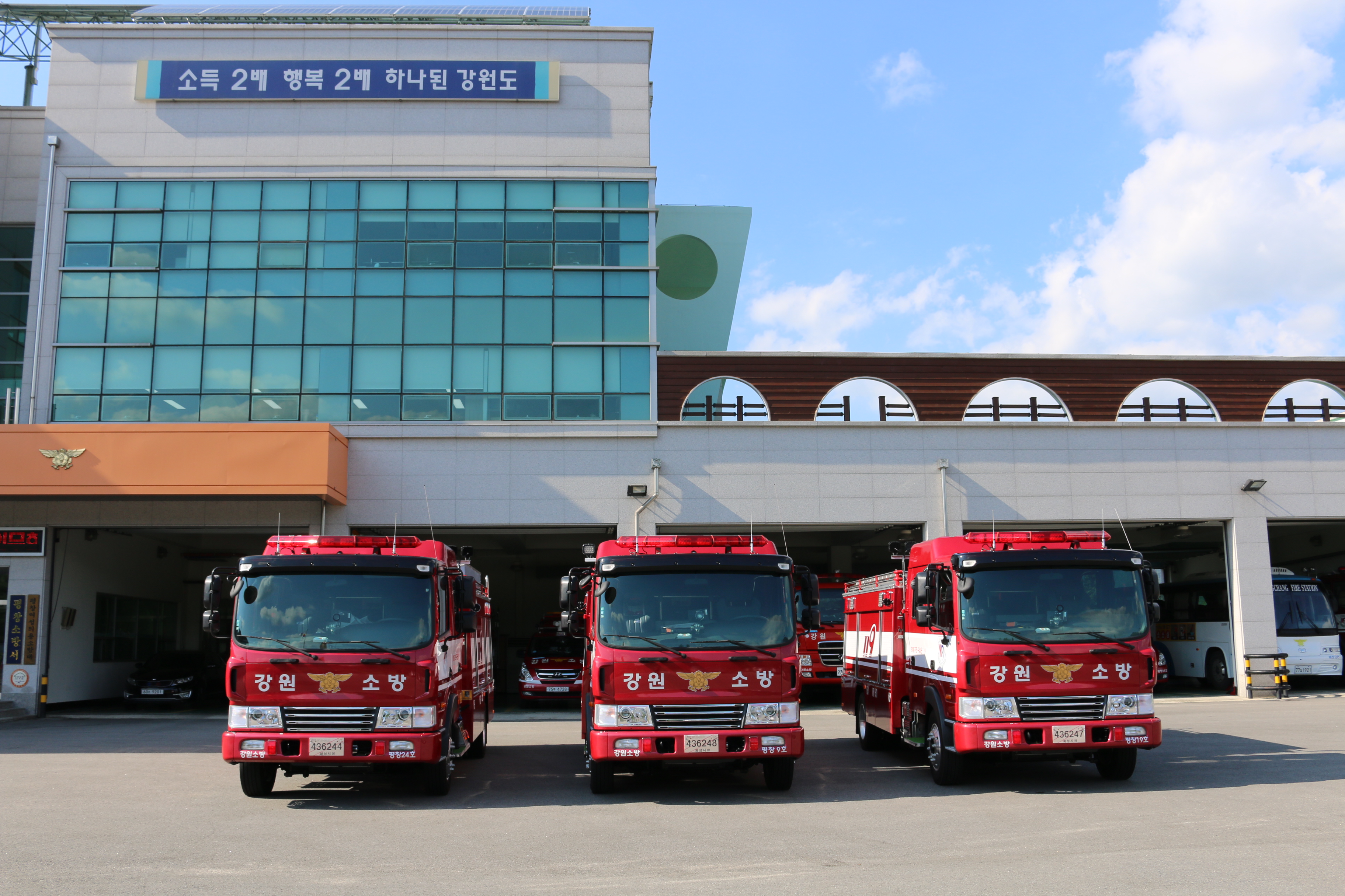 평창소방서(서장 남궁 규)는 7월 27일 평창동계올림픽 안전관리 동력확보를 위한 소방인프라 확충의 일환으로 신규 소방차량 3대를 배치하였다.