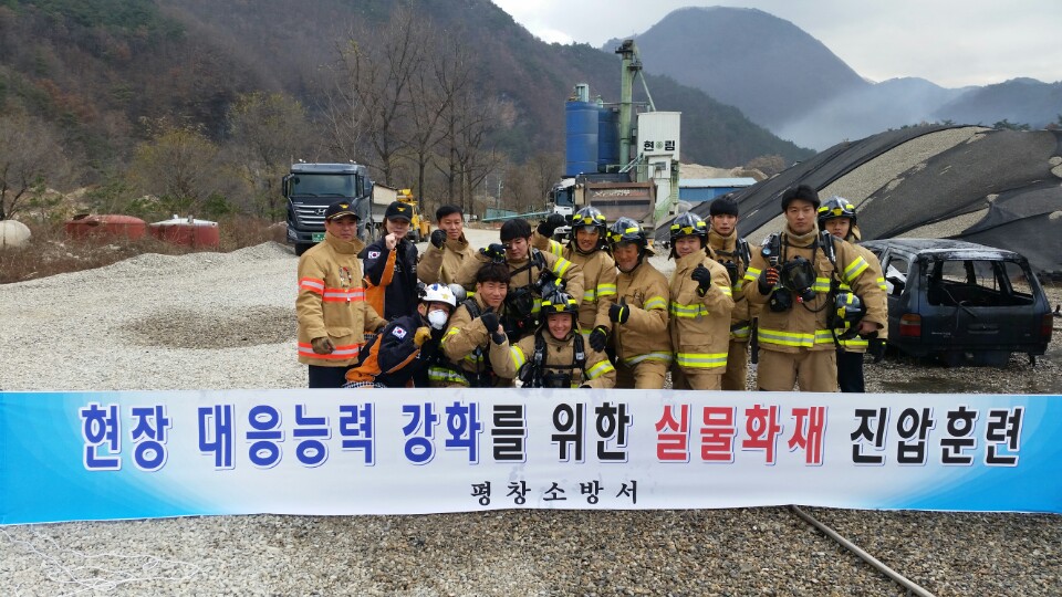 10일 오전 11시 평창읍 소재 한 공업사 공터에서 차량화재 진압훈련을 실시했습니다.