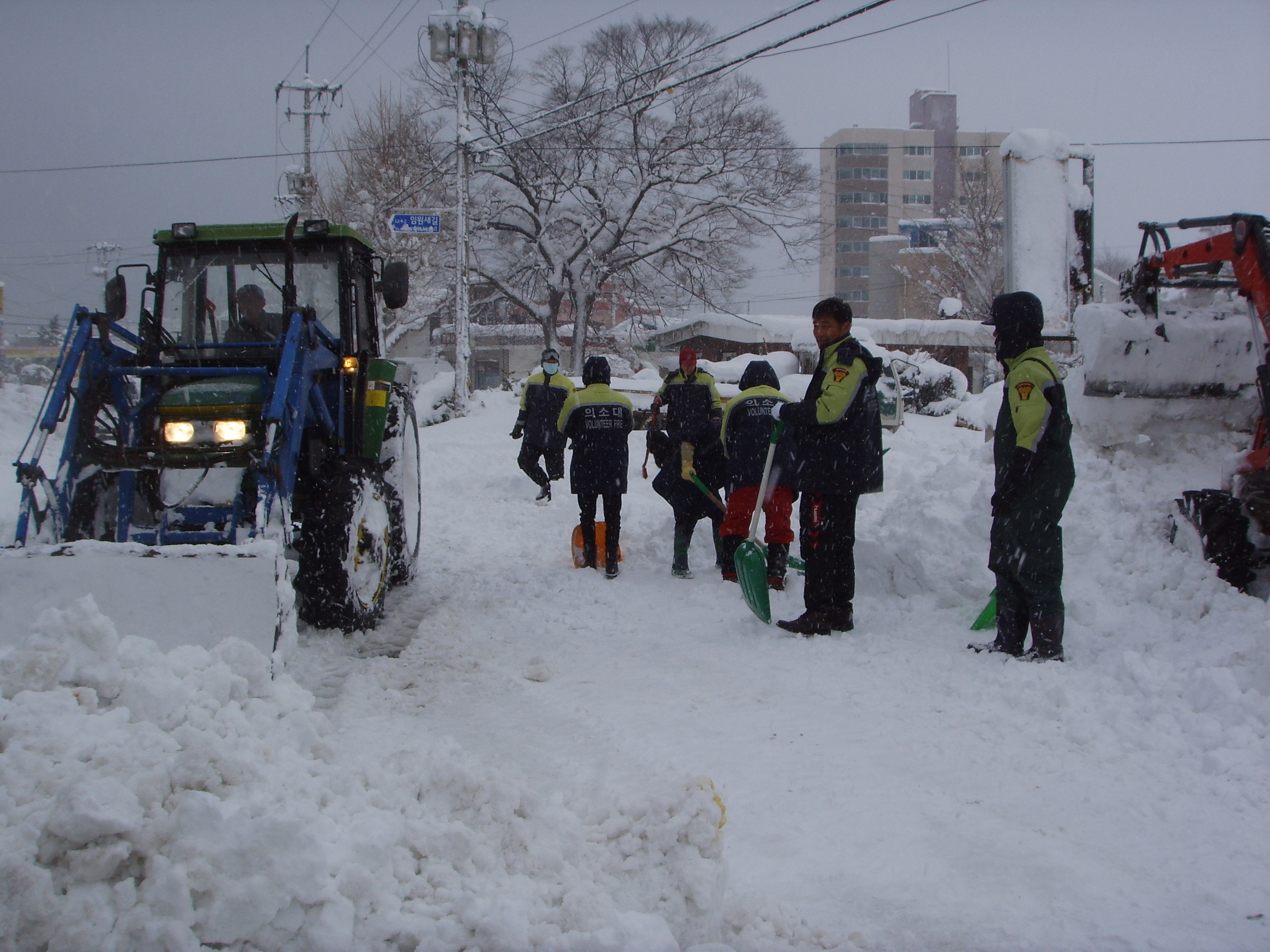 중장비를 동원하여 제설작업을 하였다.