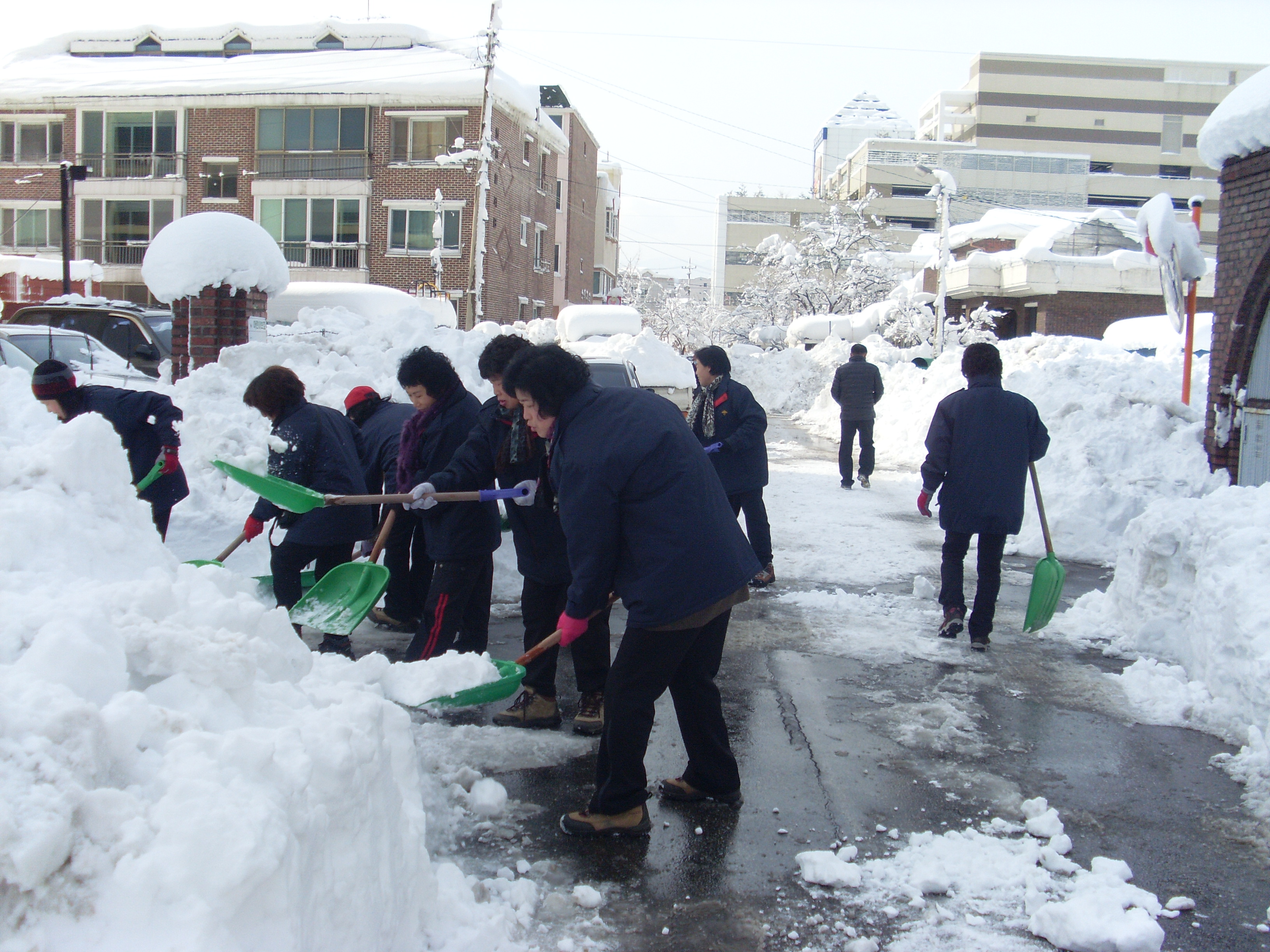 삼척여성대 20여명이 시가지 일대 사람 손길이 닫지 않은곳을 제설작업 실시함