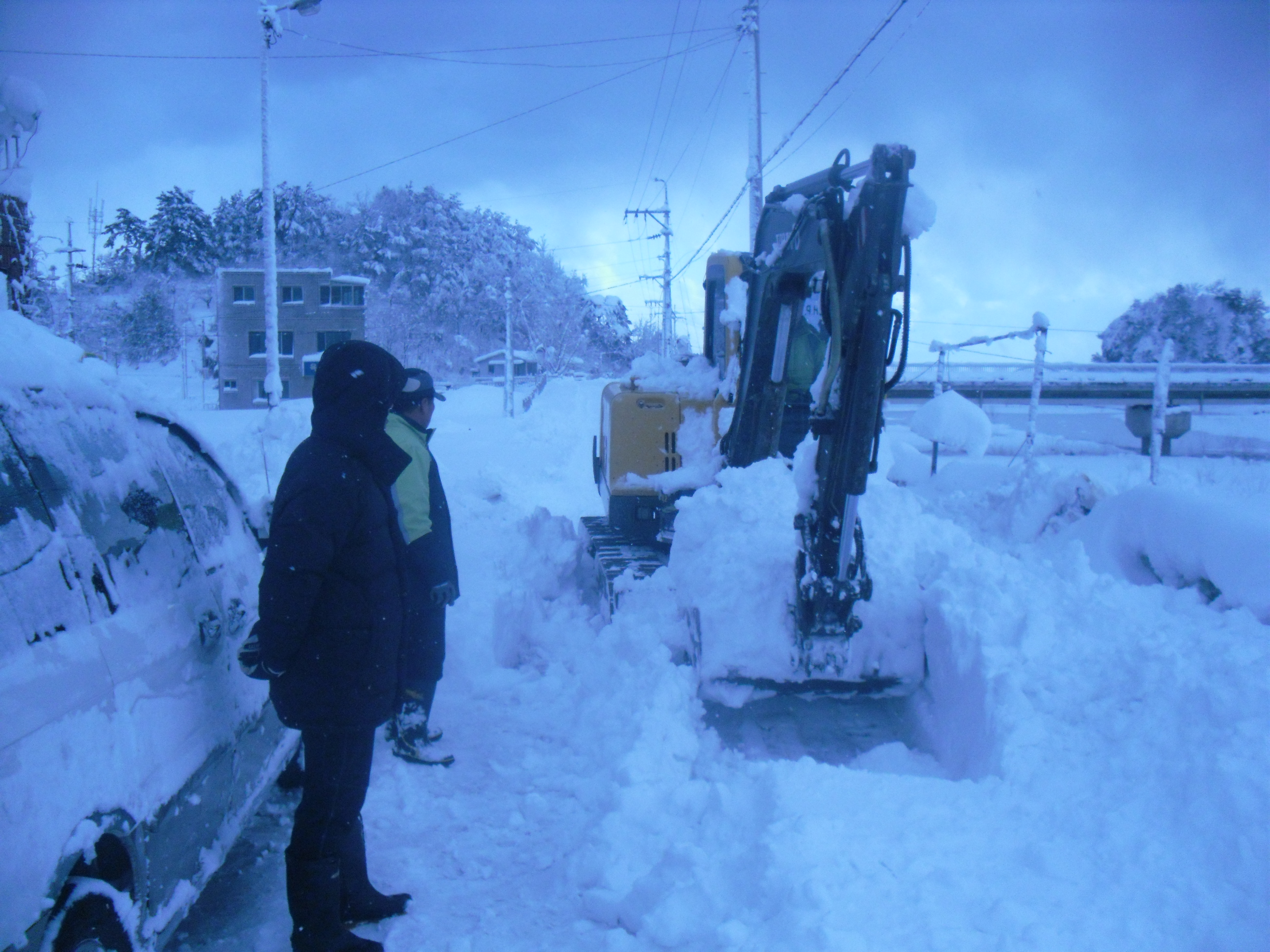 원덕의용소방대원 33명은 02월 14일 원덕읍 월천리 양원한씨 축사 붕괴로 인한제설작업을 오전 09시부터 오후17시까지 제설작업을 했읍니다. 그리고 시내 제설작업은 02월 12일 시내 도로작업을 했으며 동원인원은 20명이 봉사했읍니다. 02월 13일은 시내 인도작업과 동시에 도 경계근무초소에 도보로 빵과 음료수를 폭설에 고립되어 있는분에게 전달했읍니다.