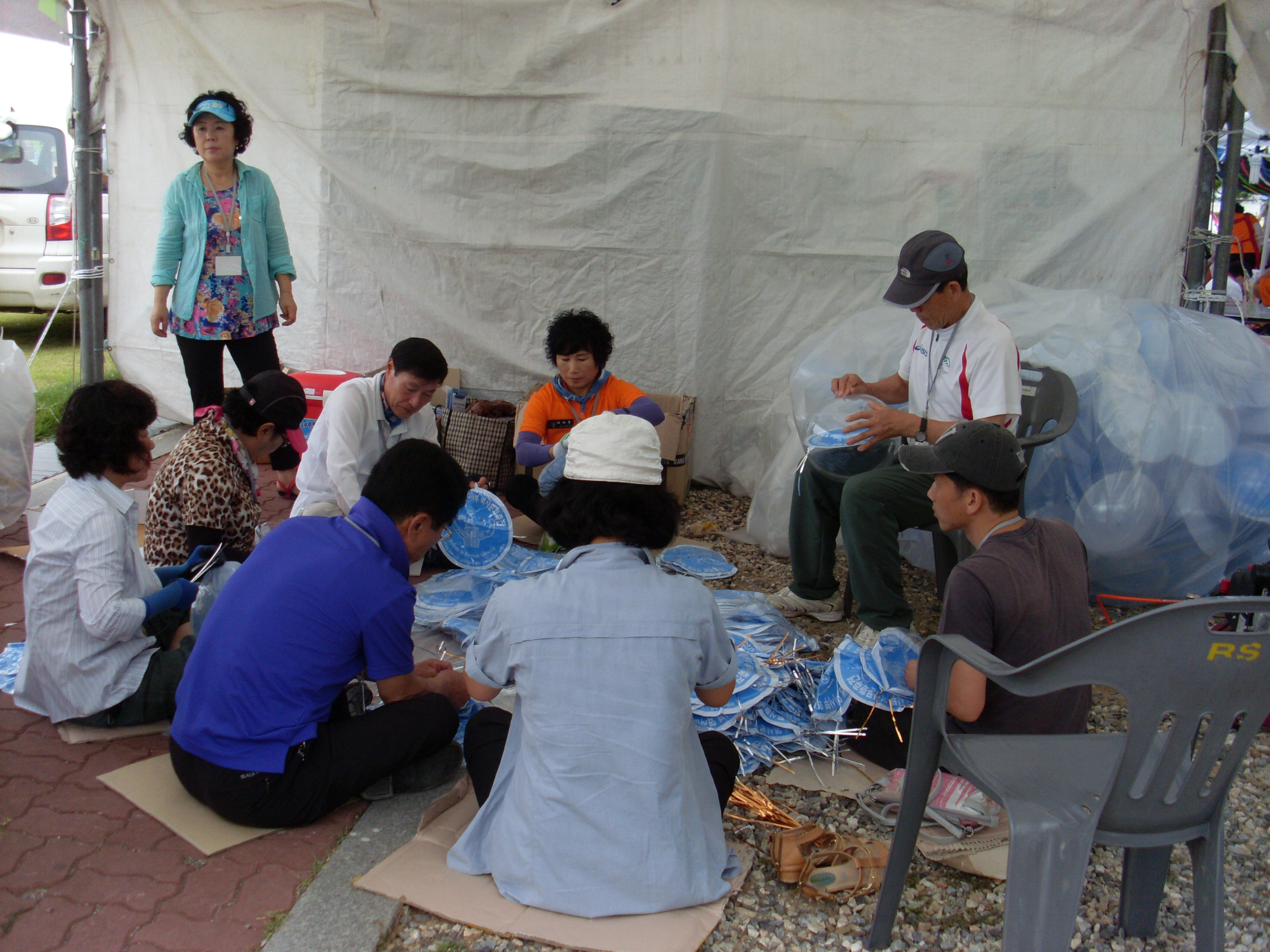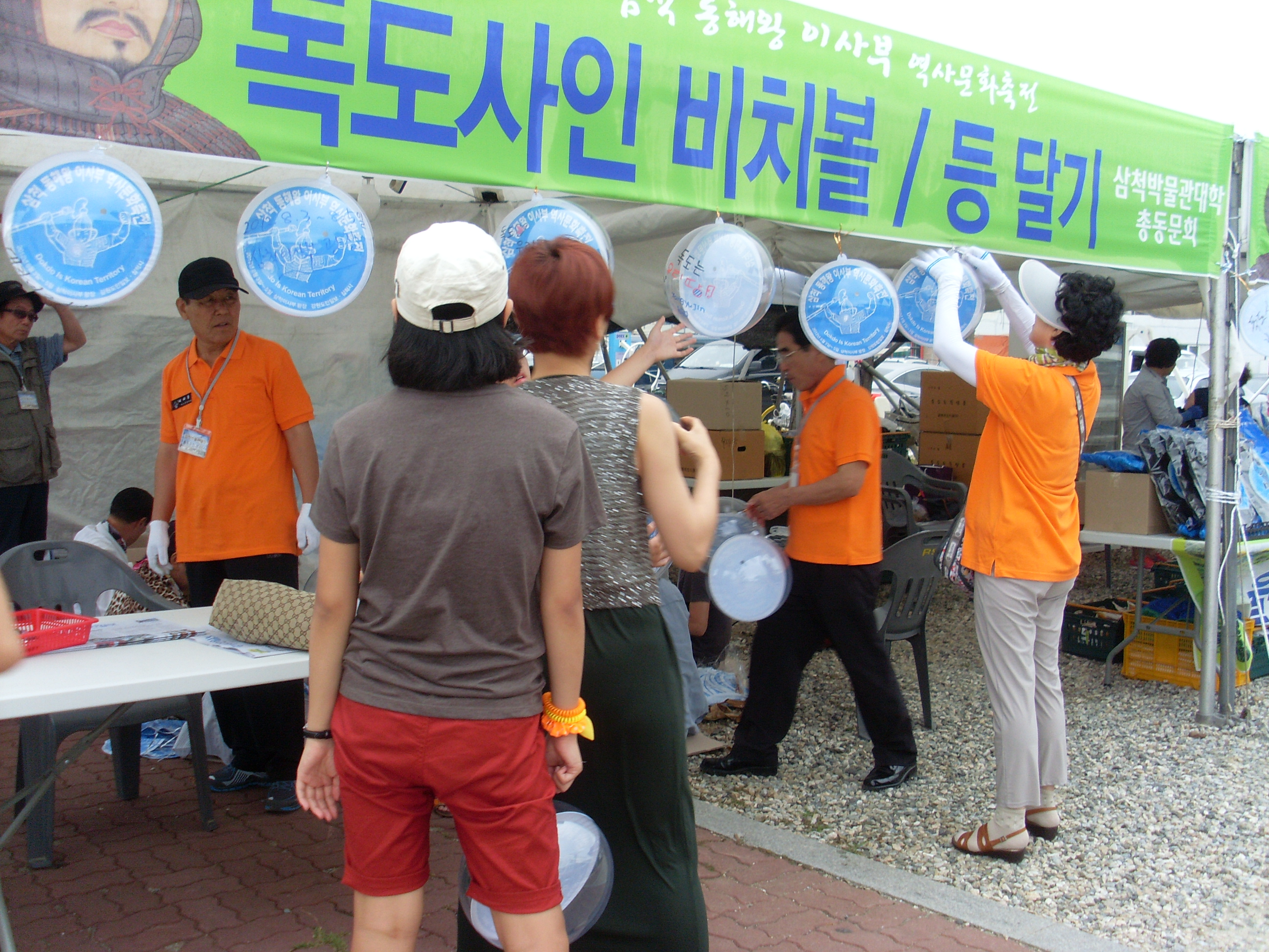 여성대 대원들도 참여 독도 사인 비치볼 공기주입, 등달기 도