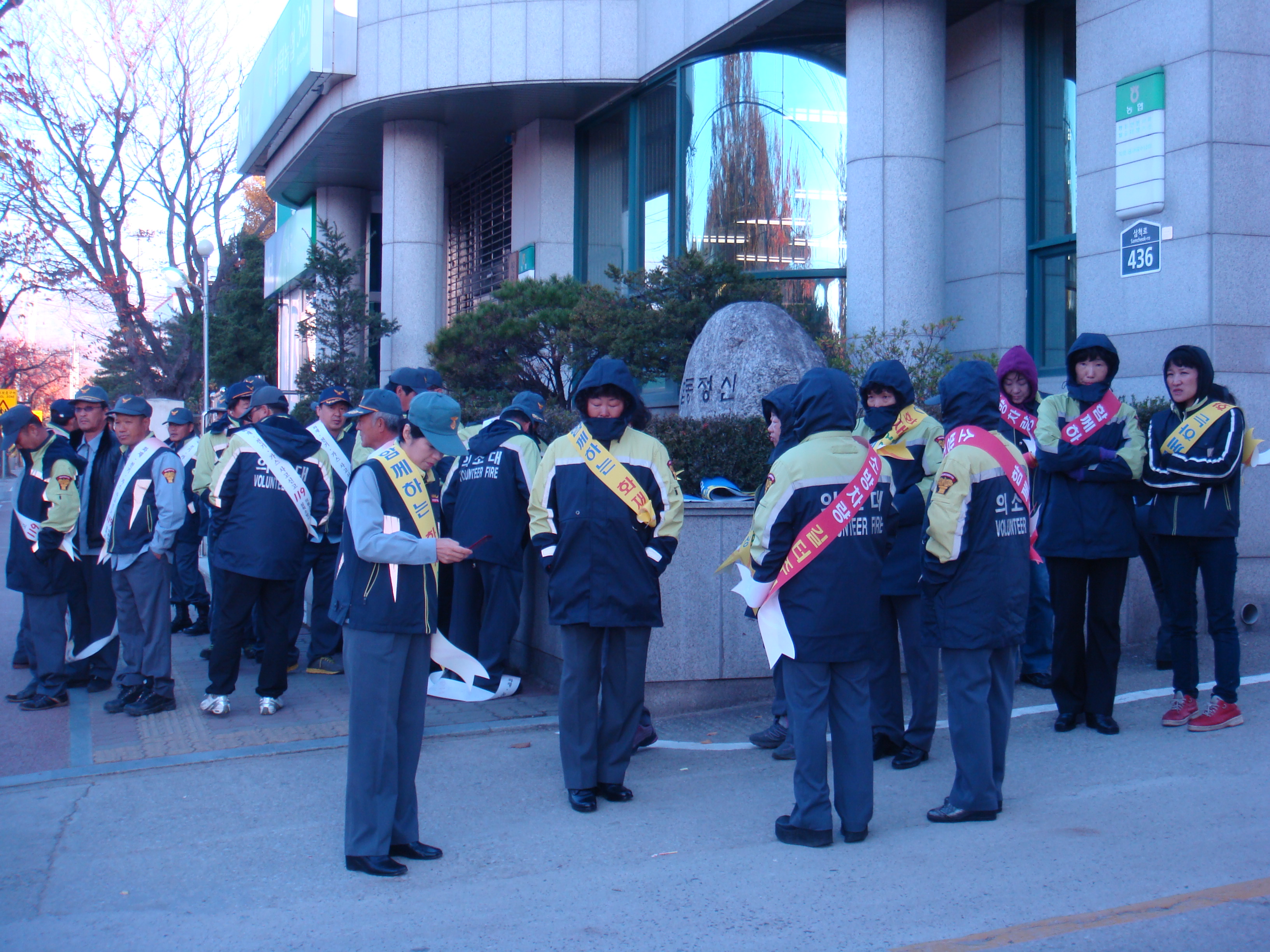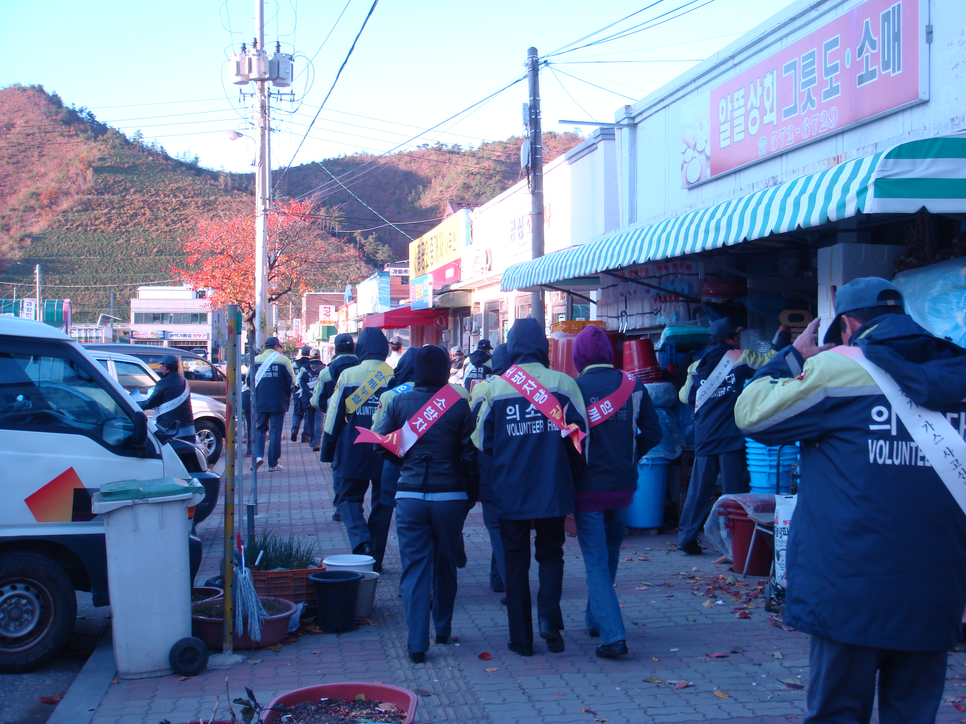 매서운 추위속에 남.여의소대원들의 소방차 길터주기 ,