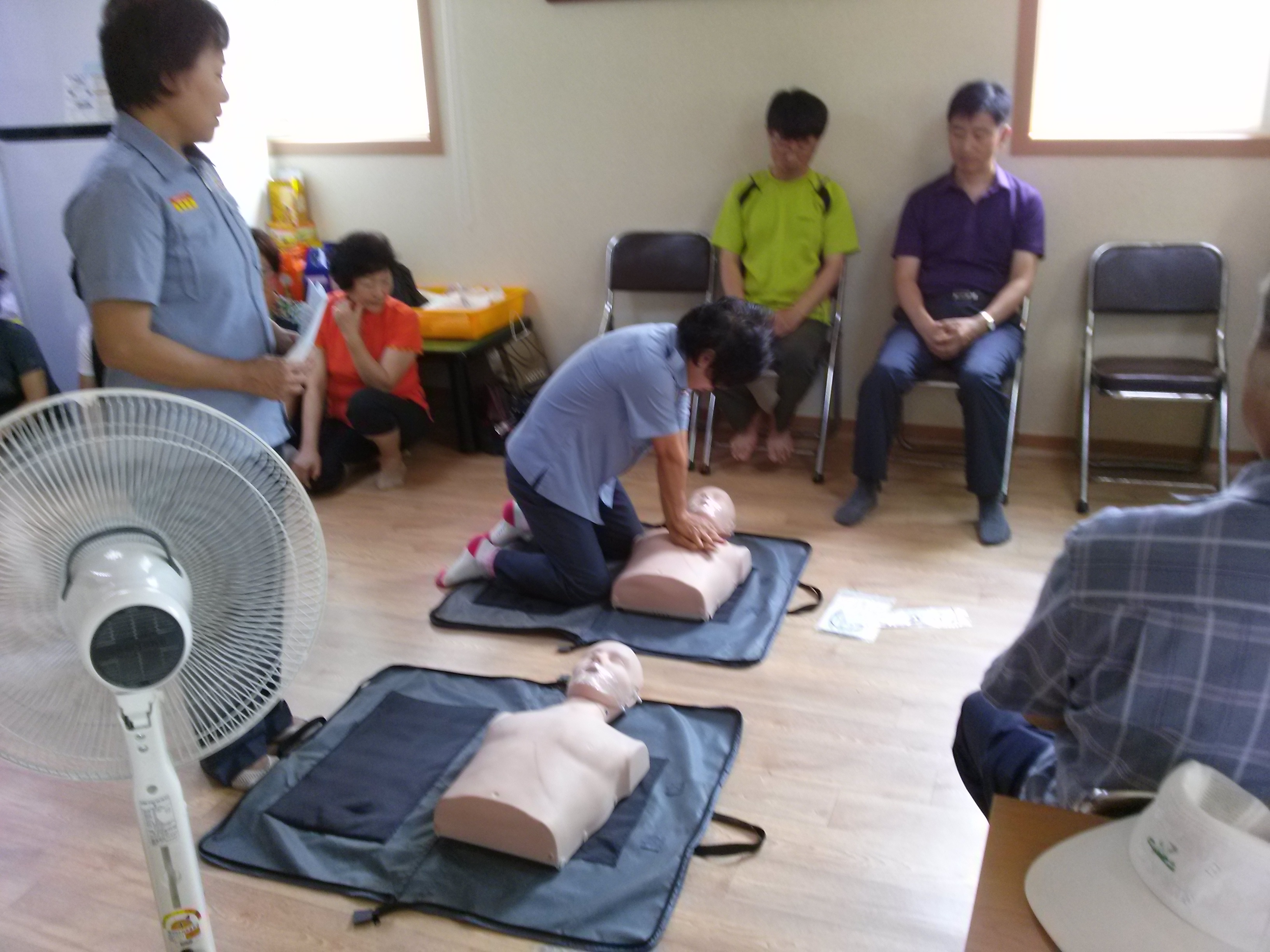 2015. 8. 19 남양동 동화3차 아파트 경로당에서 어르신들과 주민들대상으로 심페소생술 교육