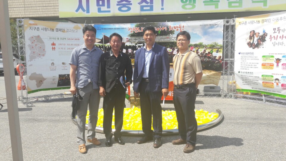 6월 12일 시청 마당에서 월드비젼에서 주최하는 지구촌 사랑나눔 캠폐인에 임원진 4명 참석해서 기부도하고 뜻있는 시간을 보내고 왔습니다^^