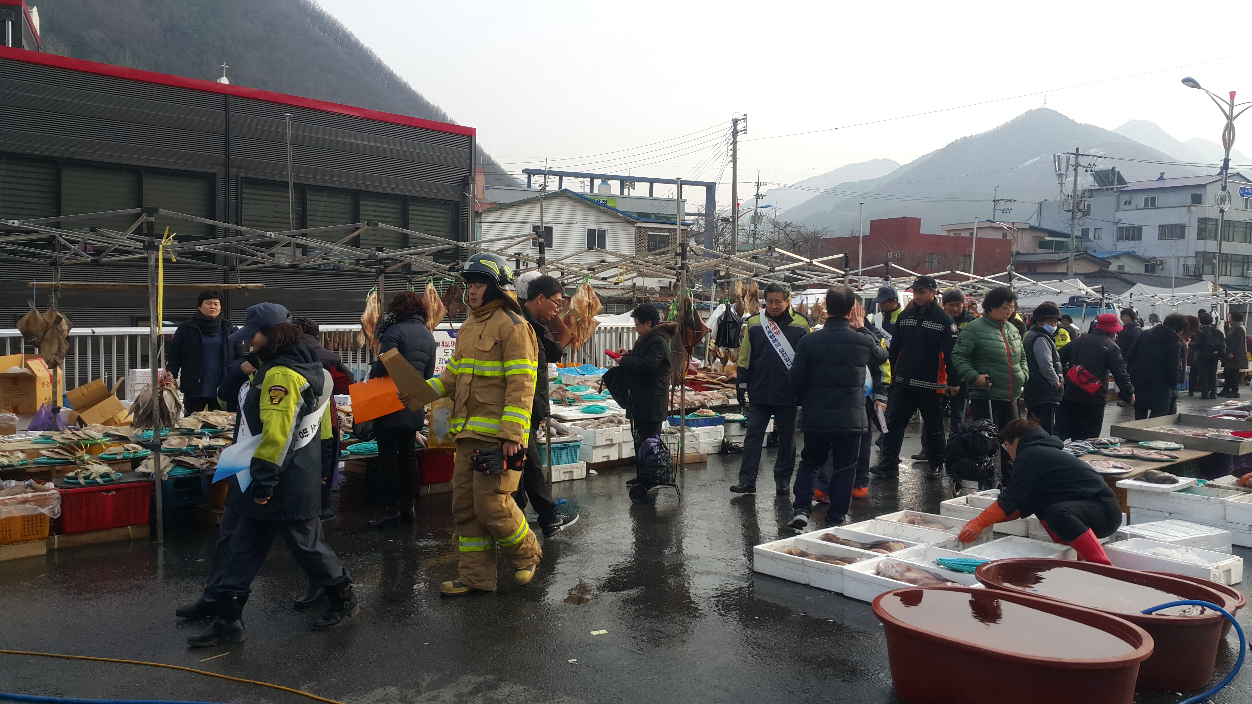 2019년 1월14일 도계전통오일장날 화재예방캠페인 활동을 도계남.여의용소방대에서 함께 했습니다