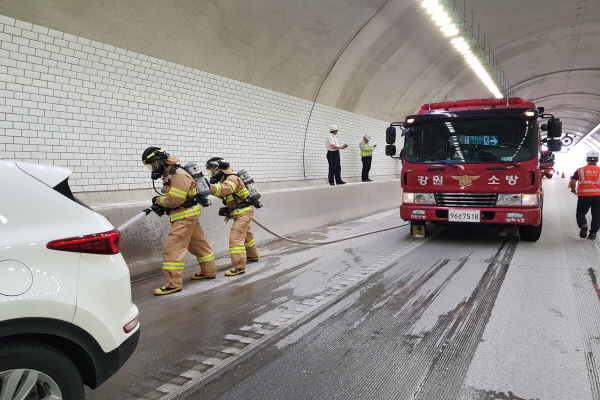 이 날 훈련은 삼척경찰서, 한국도로공사 강릉지사 등 인원 41명과 장비 14대를 동원해 터널 내 교통사고 상황을 가정해 장대터널 진압 매뉴얼에 따라 유관기관 간 역할 분담 및 개인별 임무 수행능력 강화에 초점을 맞춰 진행됐다.