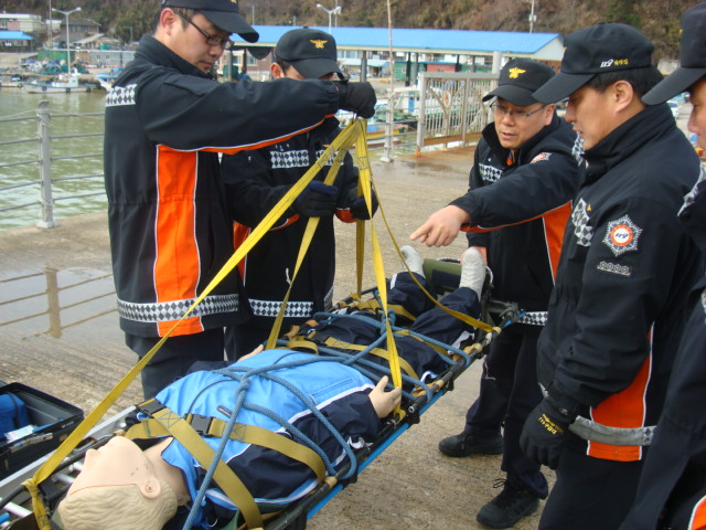 2012.03.19(월) 원덕119안전센터 3팀 소방장 김호창 외 8명은 호산항 방파제에서 3월특별자체교육(방파제수난구조훈련)을 실시하였습니다. 방파제 아래 가상상황 부여 후 요구조자 구조 및 응급조치 훈련을 하였으며 또한 탈출용 로프세트 이용법,착용훈련도 실시하였습니다.