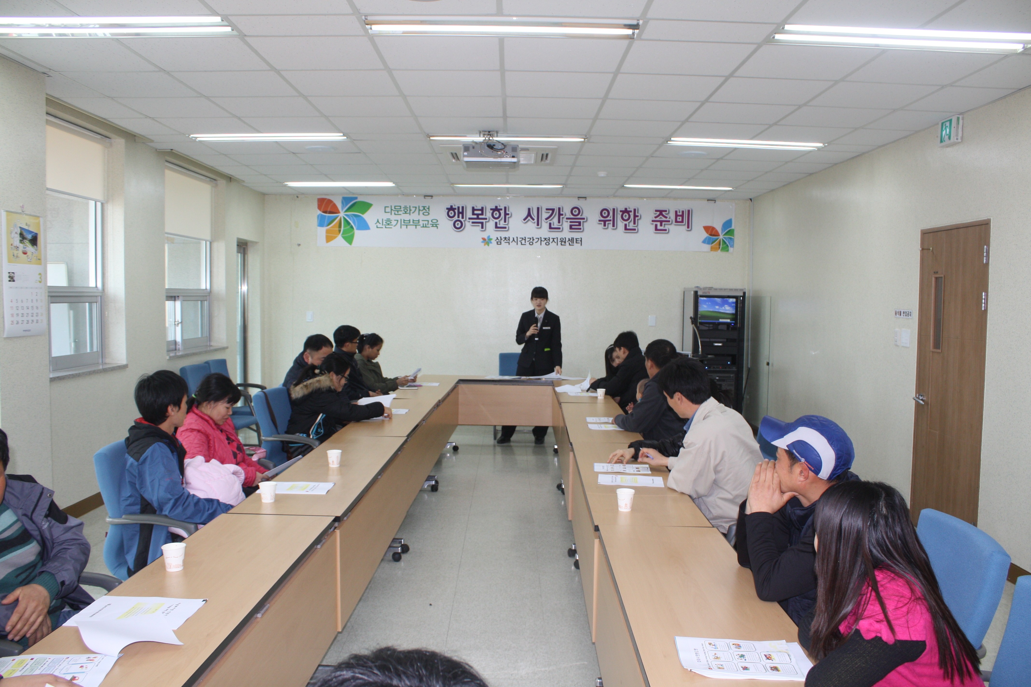 29일 10시 삼척시 건강지원센터에서 다문화 가정 신혼부부 10쌍과 함께 소방안전교육을 실시 했어요~. 우리말이 서툰 이주 여성들에게 다문화 안전 길라잡이 자료를 배부하고~ 소방서 소개와 하는일, 119 신고 요령, 화재 예방 요령 교육을 했습니다.