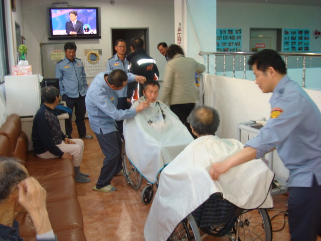 지난 3월 26일 18시~20시 원덕의용소방대장 황선 외 6명의 대원들이 동산복지재단 거주하는 15명의 어르신분께 무료 이발 봉사를 하였습니다.
