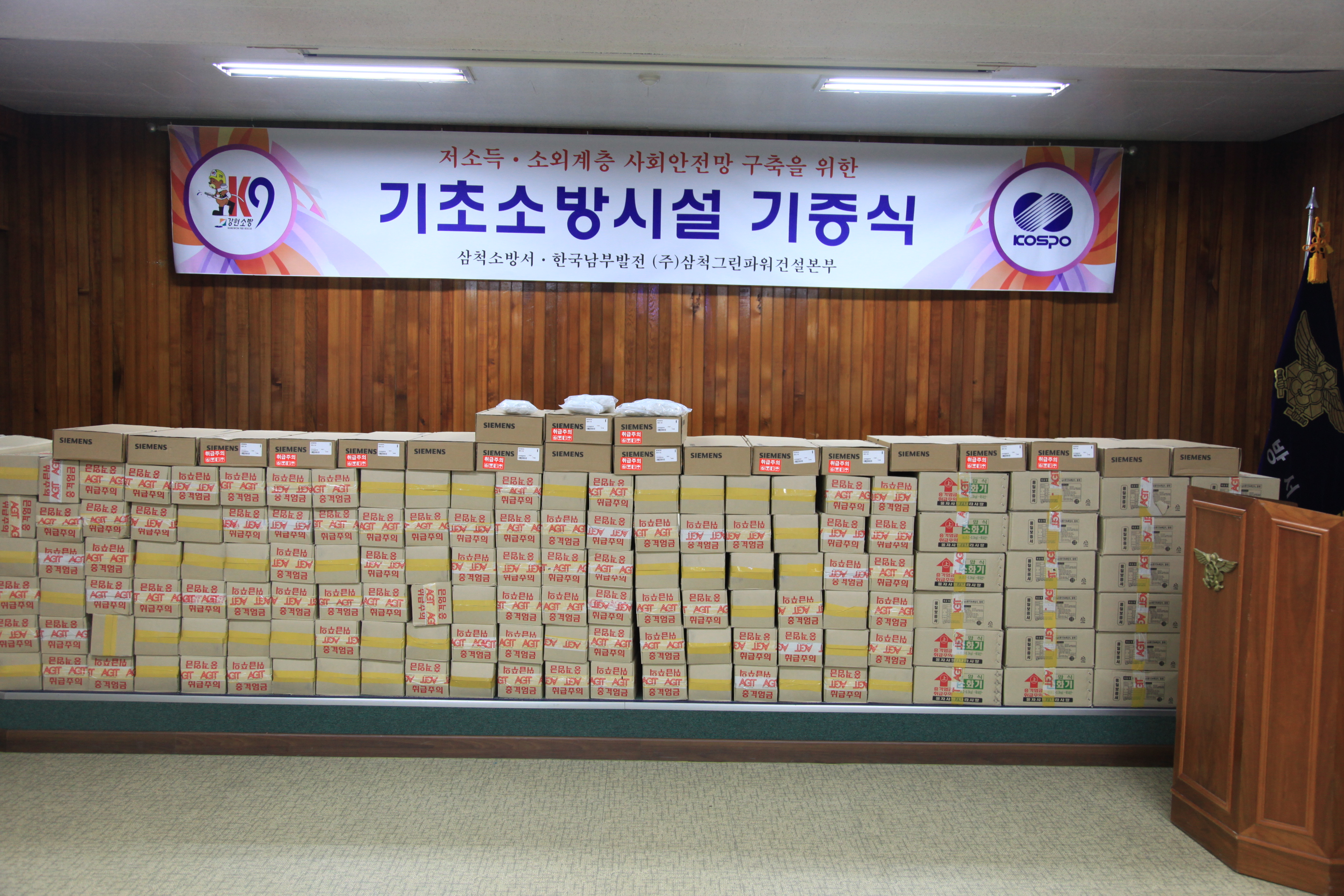 □ 삼척소방서(서장 이지만)는 12월 14일(금) 14시 대회의실에서 한국남부발전(주)(사장 이상호)과 함께 삼척시 관내 저소득 소외계층 기초소방설비 보급에 필요한 기초소방설비(소화기, 단독경보형감지기) 기증행사를 시행하였다.