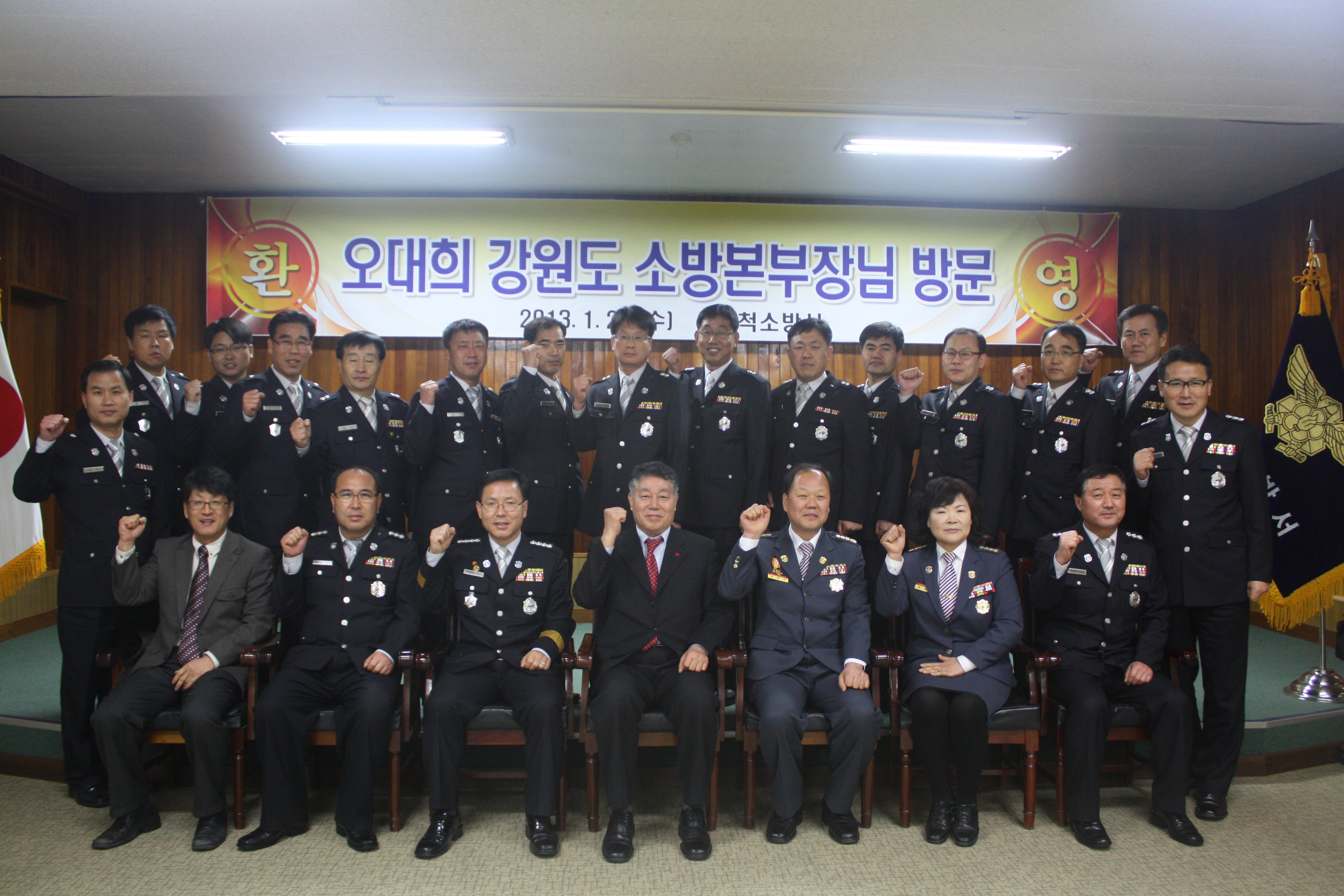 □ 강원도 소방본부장(오대희)은 2103년 1월 23일(수) 15시 삼척소방서(서장 이지만)를 초도방문 하였다. 오대희 강원도 소방본부장은 24시간 맡은 바 임무에 충실하며 삼척시민의 안전을 위해 노력해 온 직원들의 노고를 치하하고 격려하였다. 이지만 서장은 지역적 특성에 따른 소방안전대책 및 특수시책을 보고하였으며 건의사항으로 도계안전센터 이전 신축 사항을 보고했다