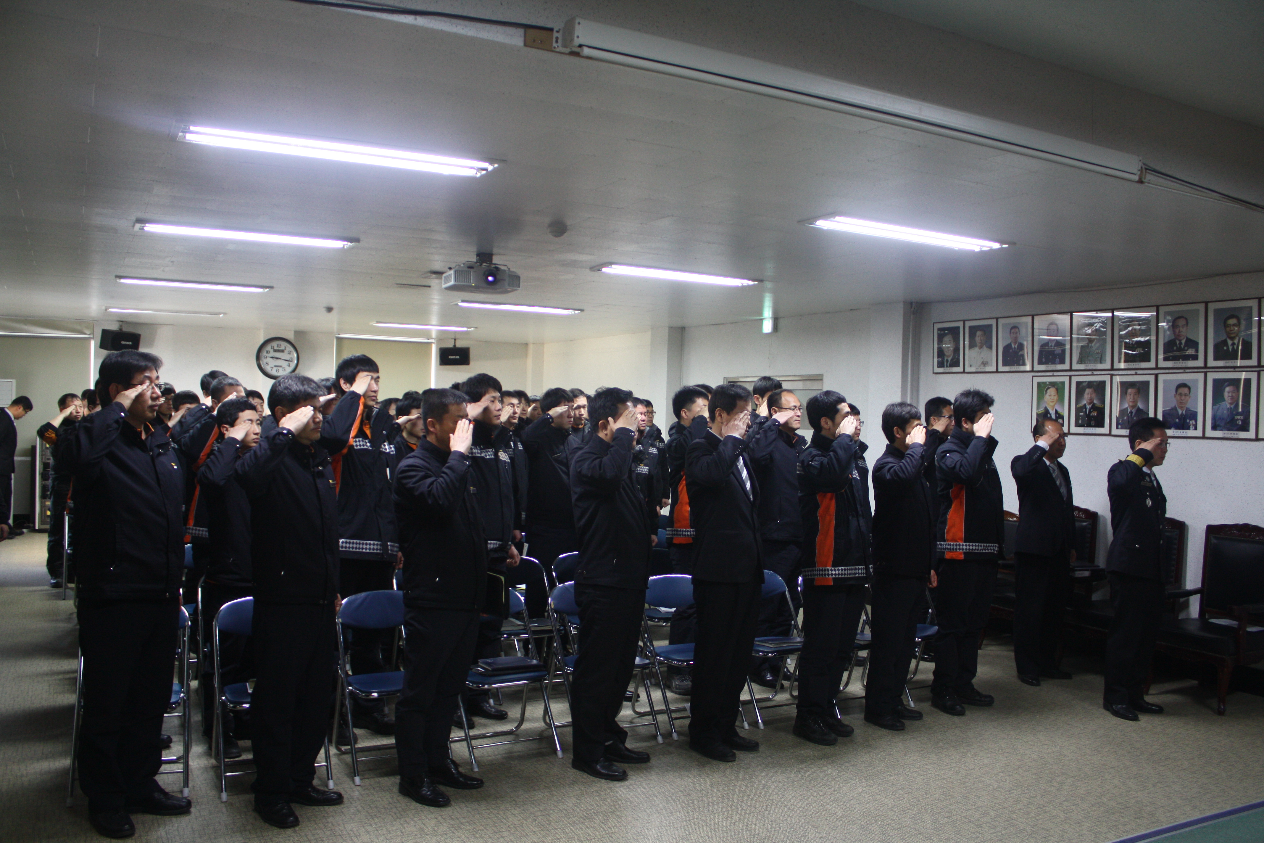 ▲ 삼척소방서 (서장 이지만)는 2013년 3월 11일 9시부터 대회의실에서 3월 월례조회를 실시하였다. 이번 월례조회에는 보안 교육 및 반부패 청렴 교육을 중점 실시하고, 화재 신고 및 진압유공자 표창과 안전사고 사례발표회를 실시하였다.