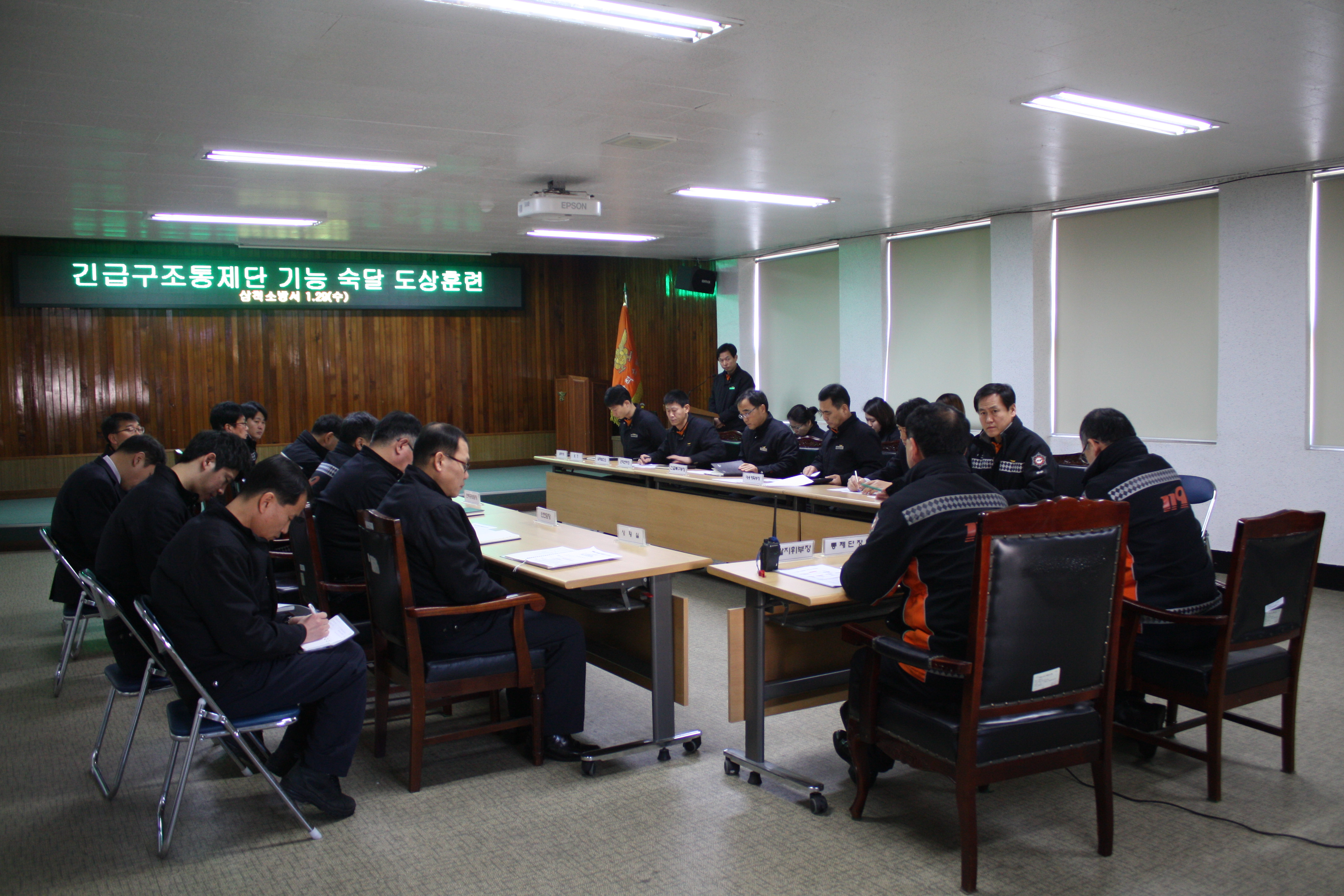 2014년 1월 29일 10시부터 대회의실에서 긴급구조 통제단(인원24명)과 함께 긴급상황에 대비한 통제단 긴급구조 기능숙달 도상훈련을 실시했다.