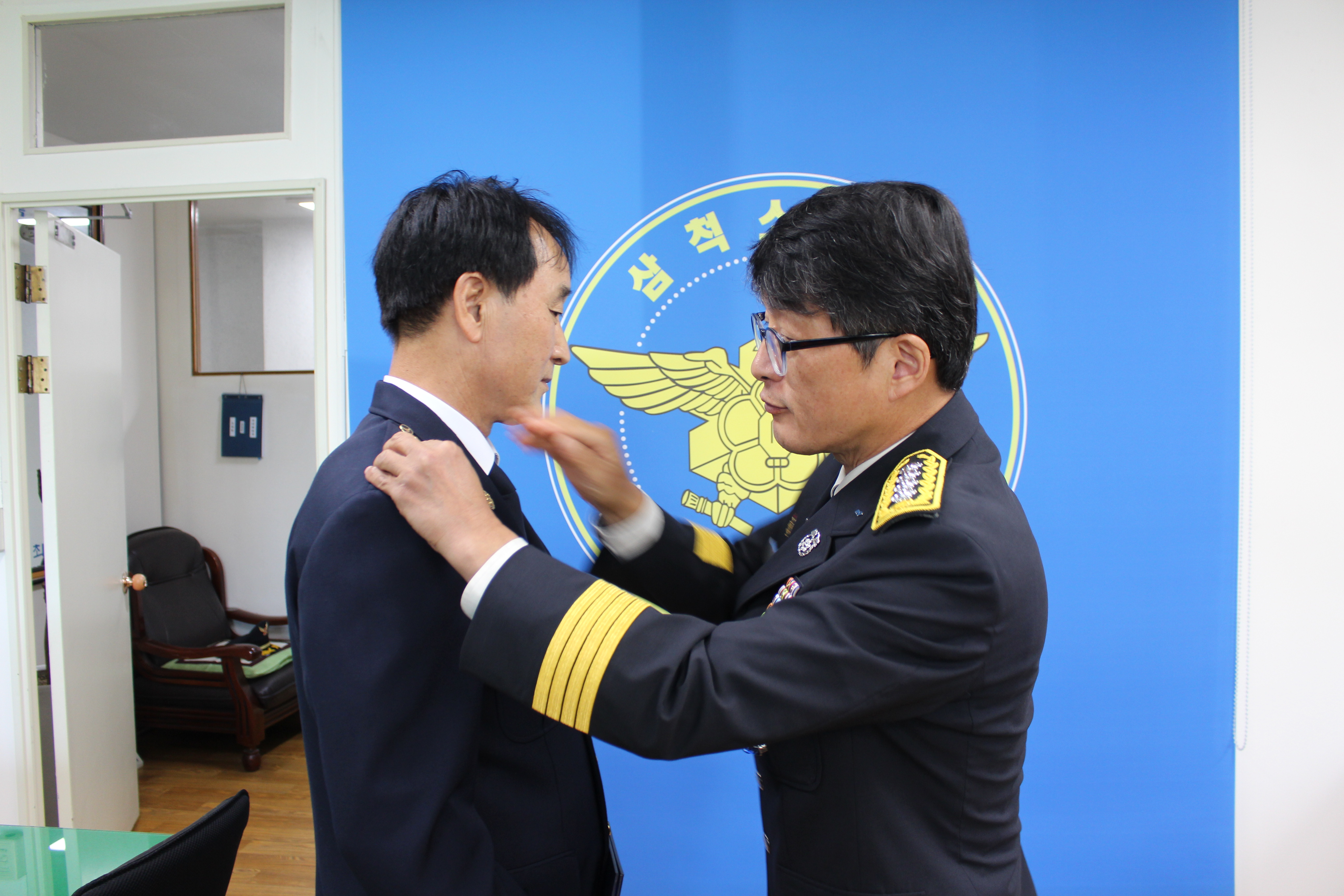 10. 8. 장기택 신임 노곡남성의용소방대장의 임용장 수여식을 서장실에서 진행했다.