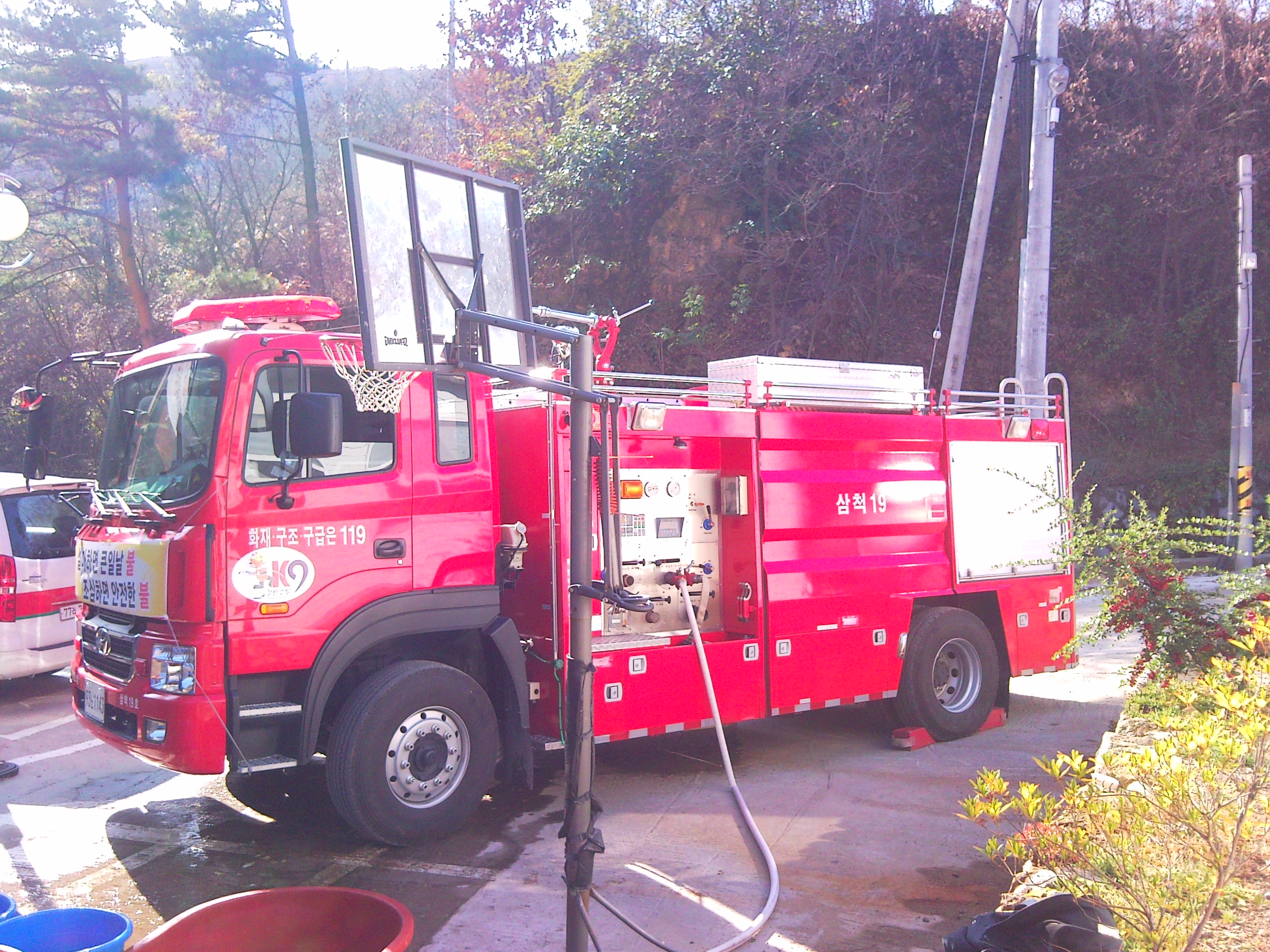 원덕 119안전센터에서 소방차를 이용하여 손쉽게 김장을 담글 수 있도록
