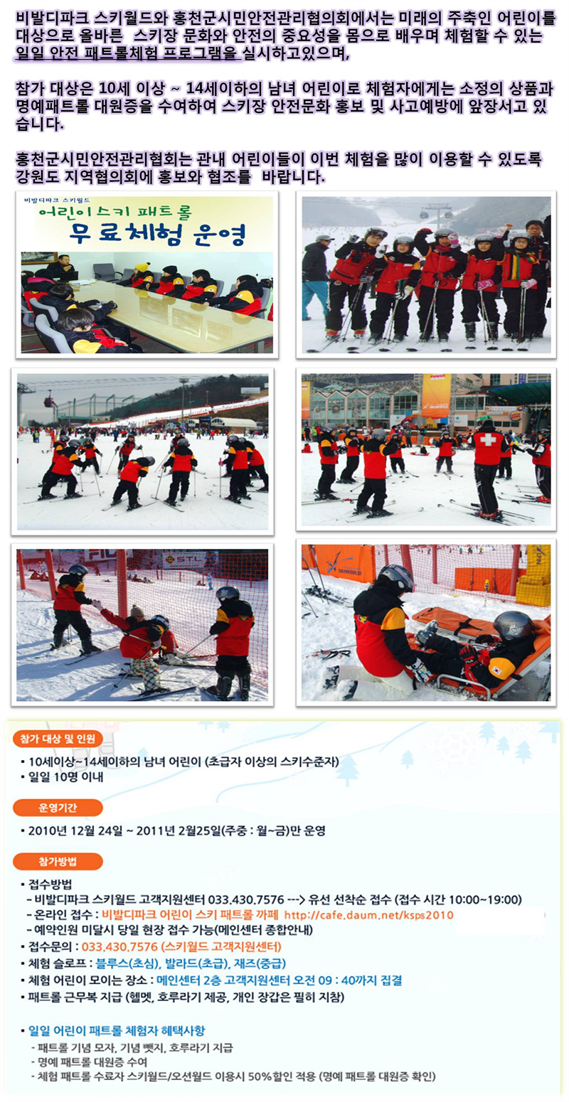 홍천군시민안전관리협의회에서 비발디파크와 스키장 안전 패트롤 이벤트 실시