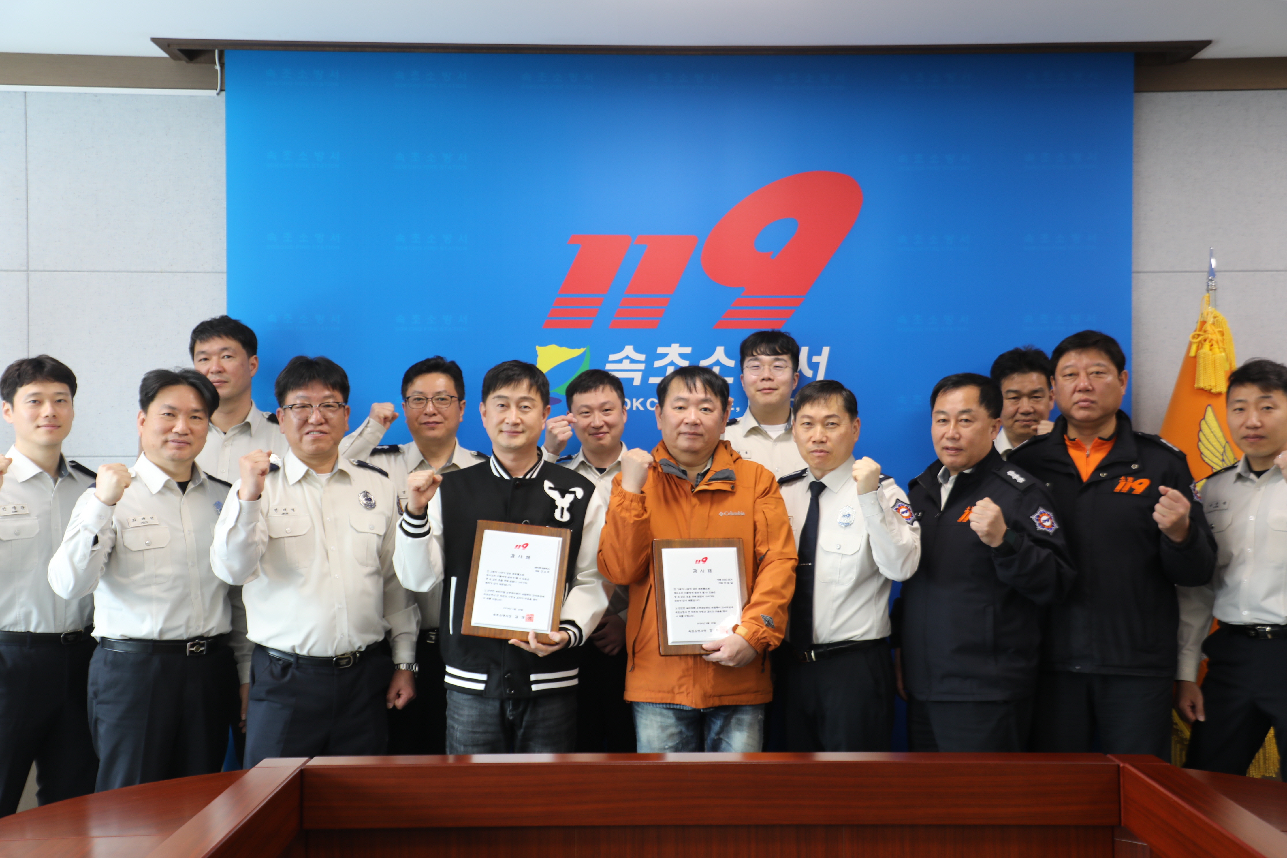 속초소방서(서장 김재석)은 29일 10시 전국 소방공무원을 대상으로 선행을 베푼 속초시 관내 휴게음식점 두 곳에 감사패를 전달하였다.