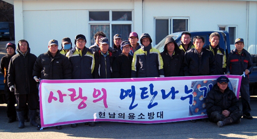 양양 현남의용소방대(대장 전양병) 대원 30명은 22일 현남지역 19개리 22가구에 100장씩 2,200개의 사랑의 연탄 나누기 봉사활동을 펼쳤다.