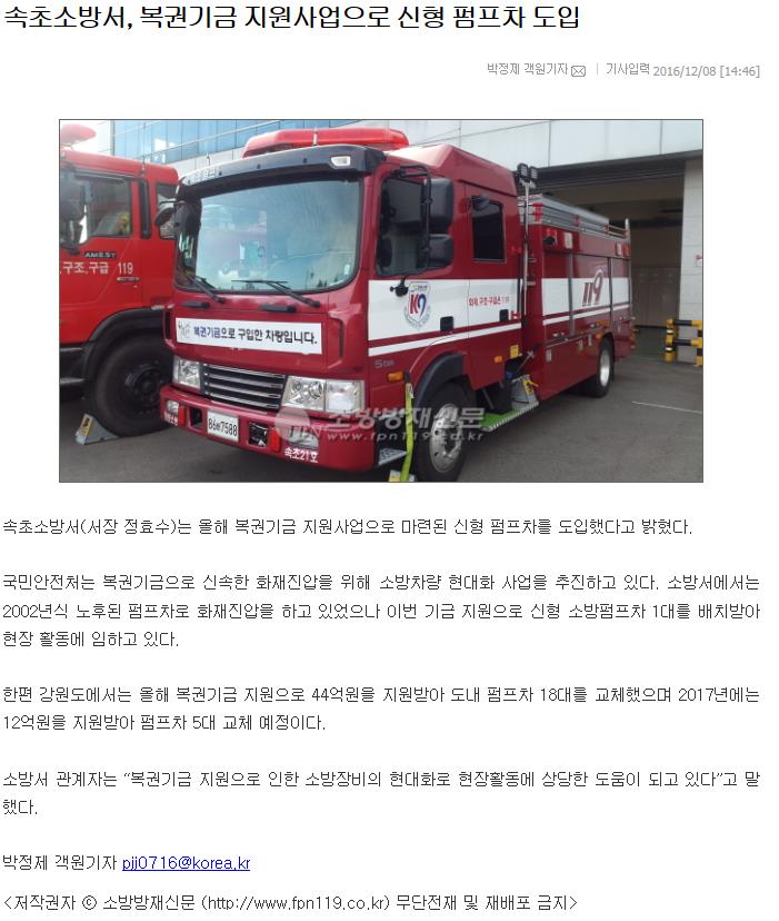 161208_방재신문,포커스뉴스_복권기금_지원사업으로_신형_펌프차_도입.JPEG