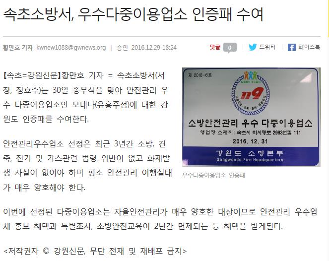 161229_강원신문,방재신문_우수다중이용업소_인증패_수여.JPEG