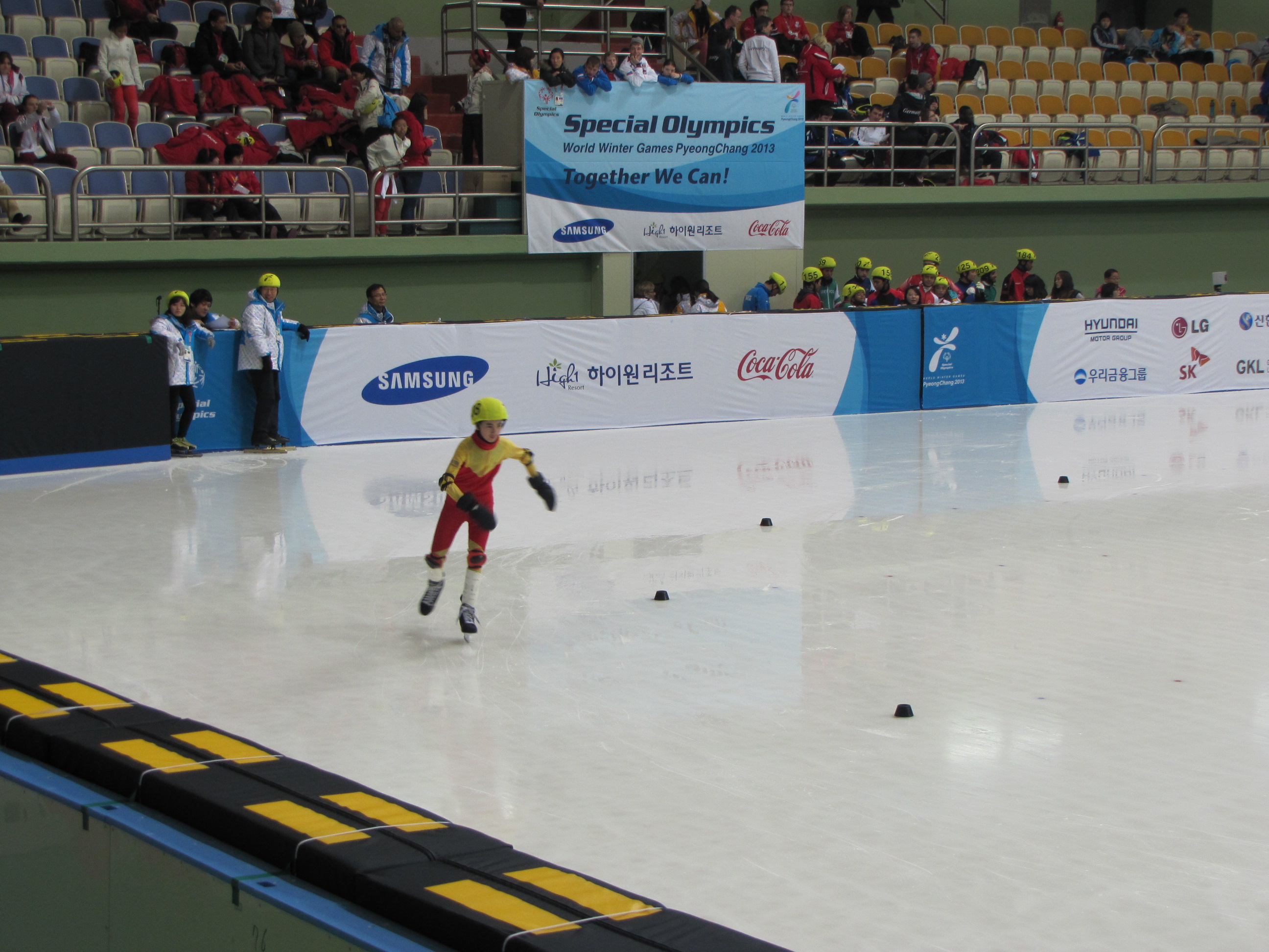 지적장애인들로 구성된 선수들이 참여한 이날 경기에서 쇼트트랙스피드스케이팅 경기를 관람하던중 어려운 몸을 이끌고 최선을 다하는 선수들을 보며 교직원들의 가슴이 찡! 했다는 후문이 있었다.