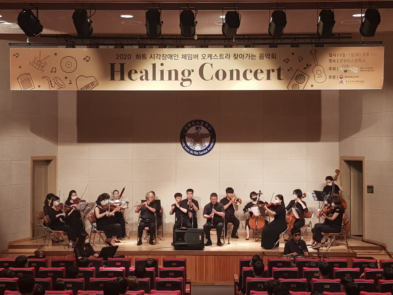 강원도소방학교(학교장 박태원)는 2020년 8월 11일 화요일 오후 1시 교내 대강당에서 2020 하트 시각장애인 체임버 오케스트라의 찾아가는 음악회‘힐링 콘서트’를 개최했다.