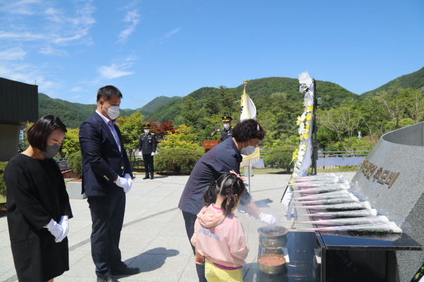 이날 코로나19로 인해 소방학교 및 태백소방서 직원 8명과 순직소방관 故 허승민 유가족 5명이 참석한 가운데 엄숙한 분위기 속 행사를 간소하게 진행했다.