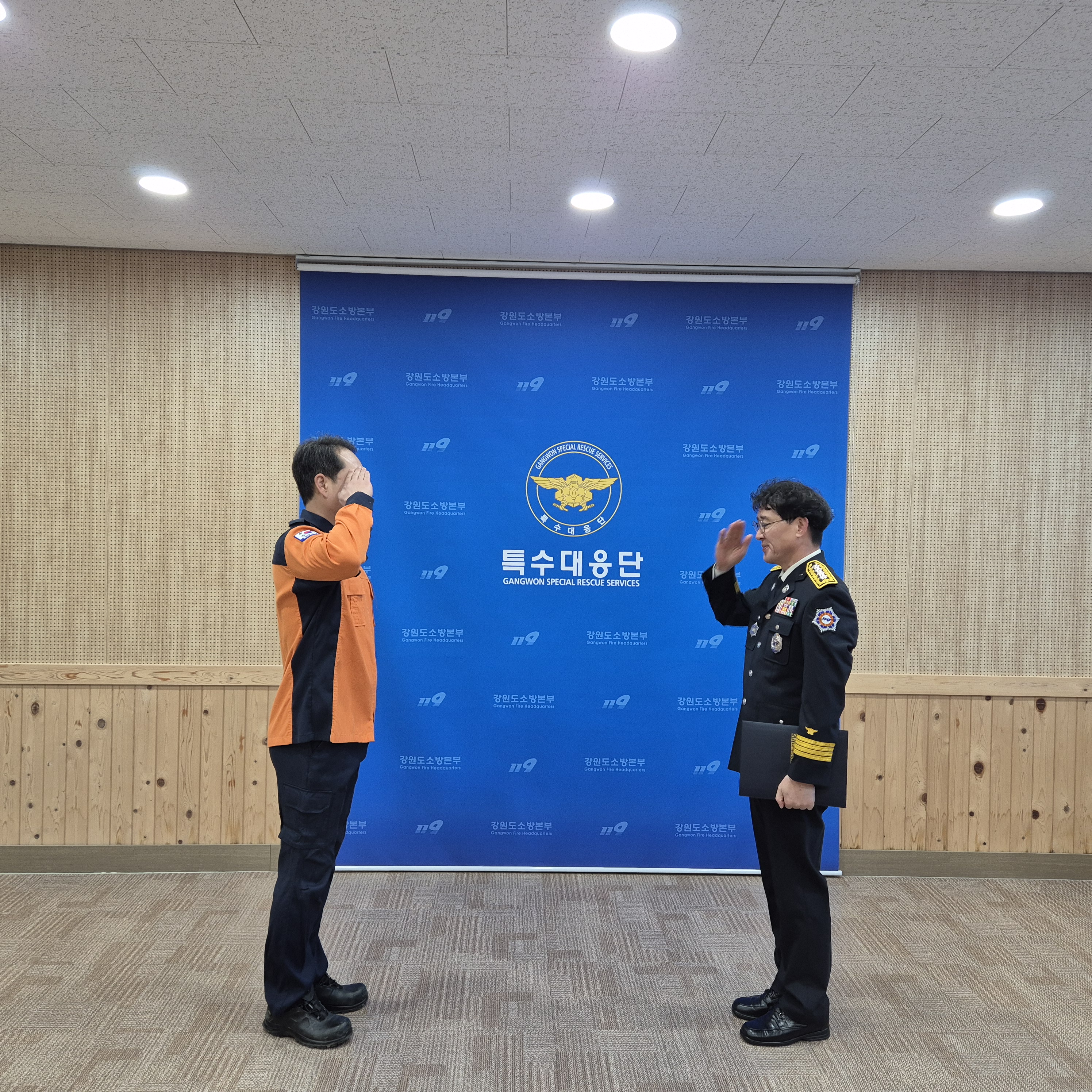 표창 대상자는 긴급기동대 소방위 박민재로 특수대응단에서 관리·운용하는 소방장비 관리 및 발전에 기여하였기에, 표창장을 수여하였습니다.