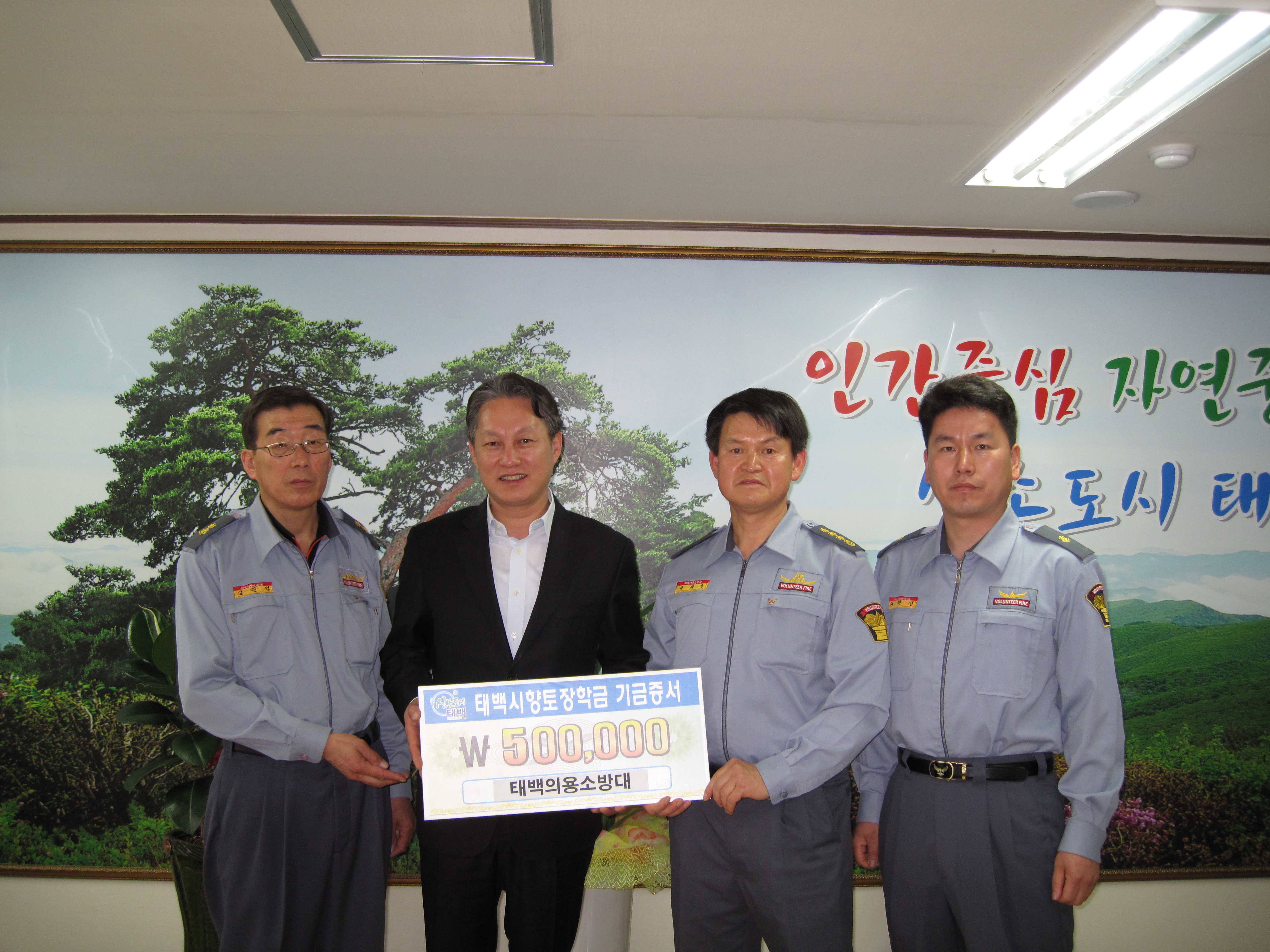 태백시를 사랑하는 마음을 담아 장학금을 전달하였다