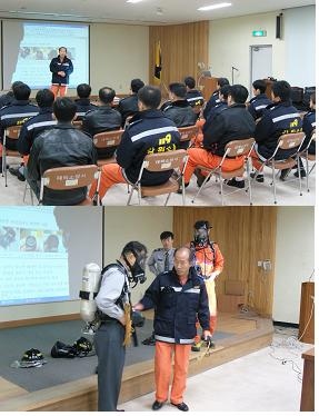 공기호흡기에 대해 관리법 및 사용법을 교육하였습니다
