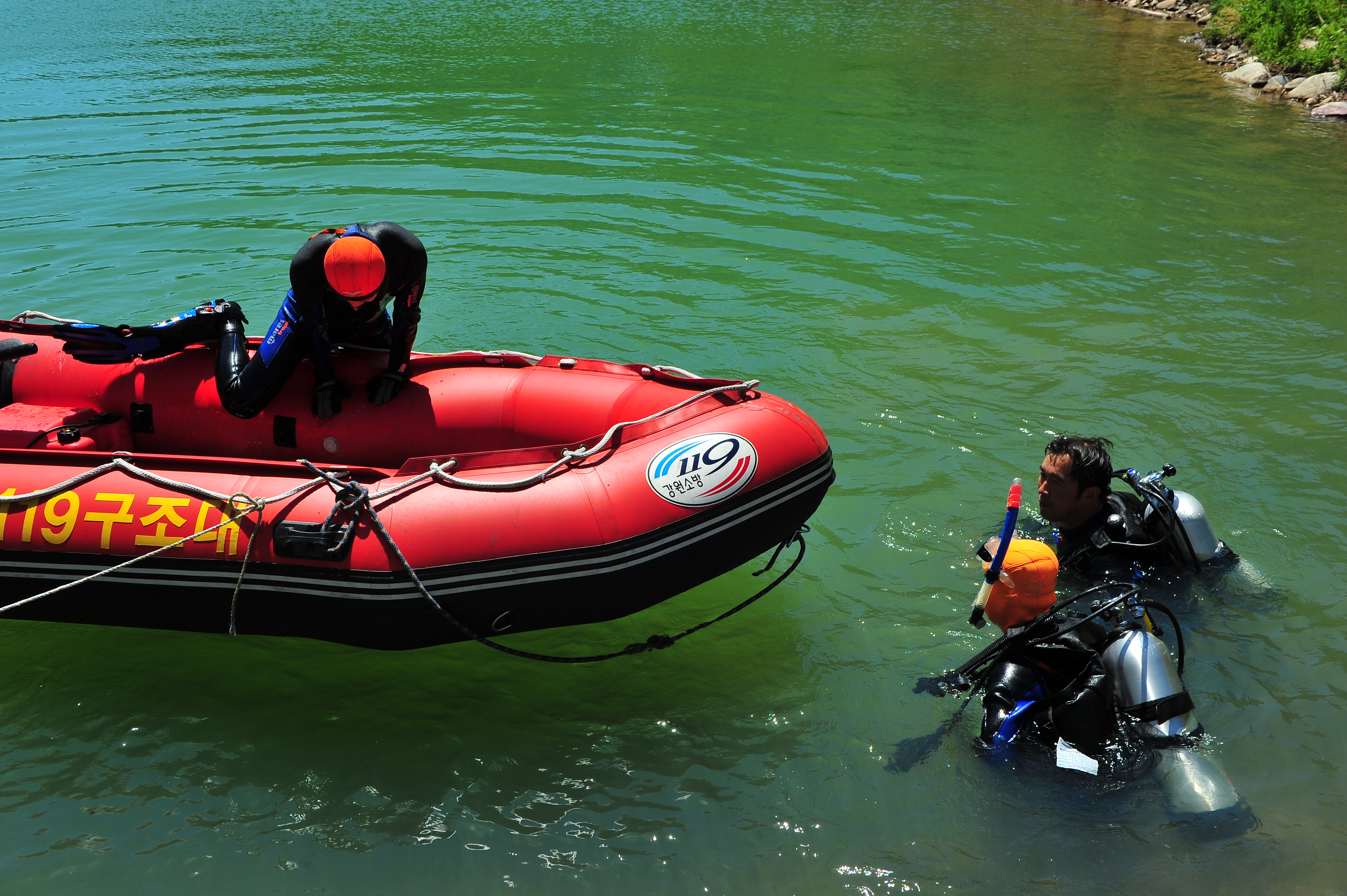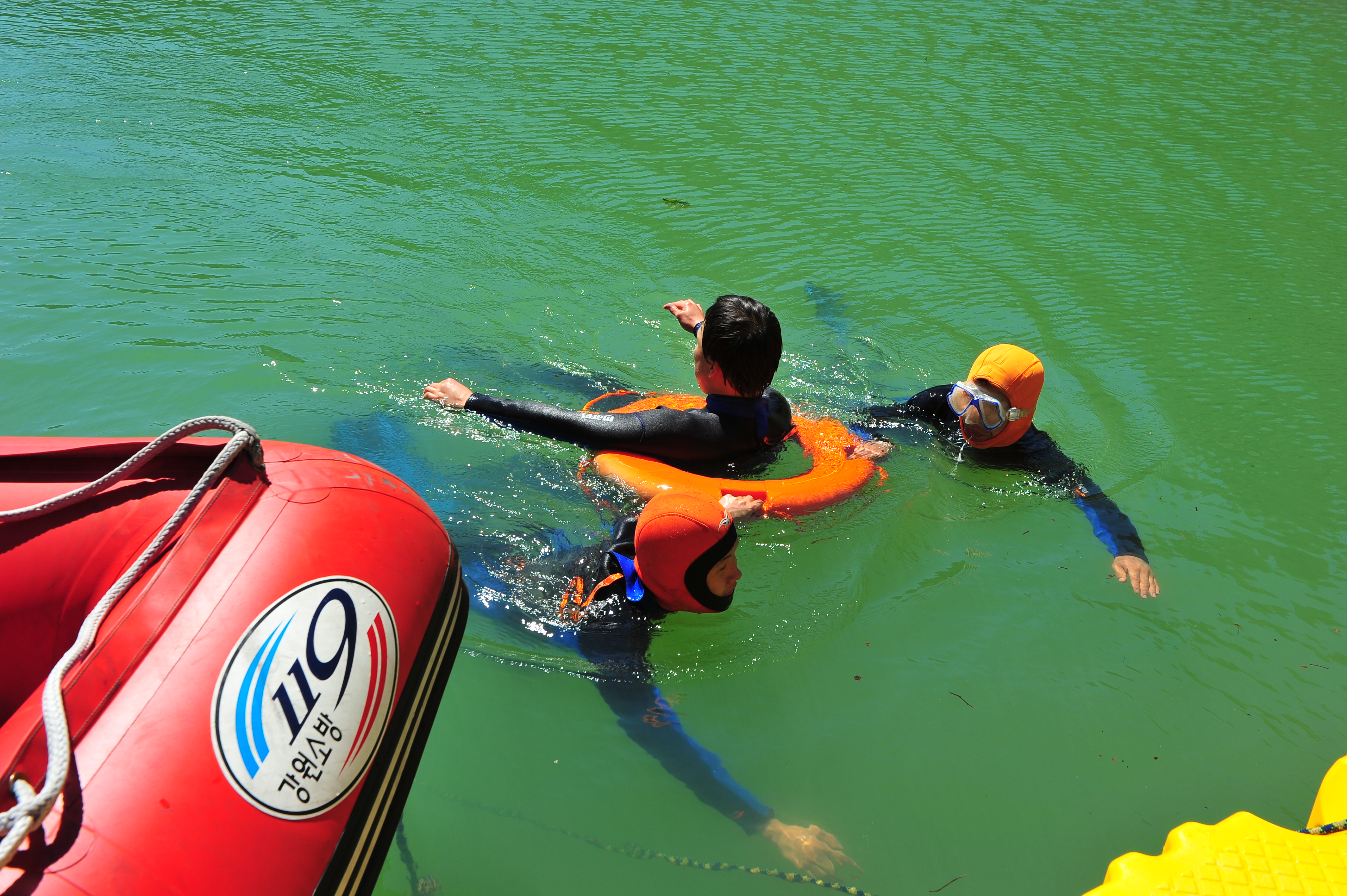 태백소방서(서장 김진봉)는 7월 24(화), 26(목) 2일간에 걸쳐 오전9시부터 오후 5시 까지 삼수동 절골저수지에서 구조구급대원 22명이 참여한 가운데 수난사고 대비 2012년 구조대원 수난구조훈련을 실시했다.