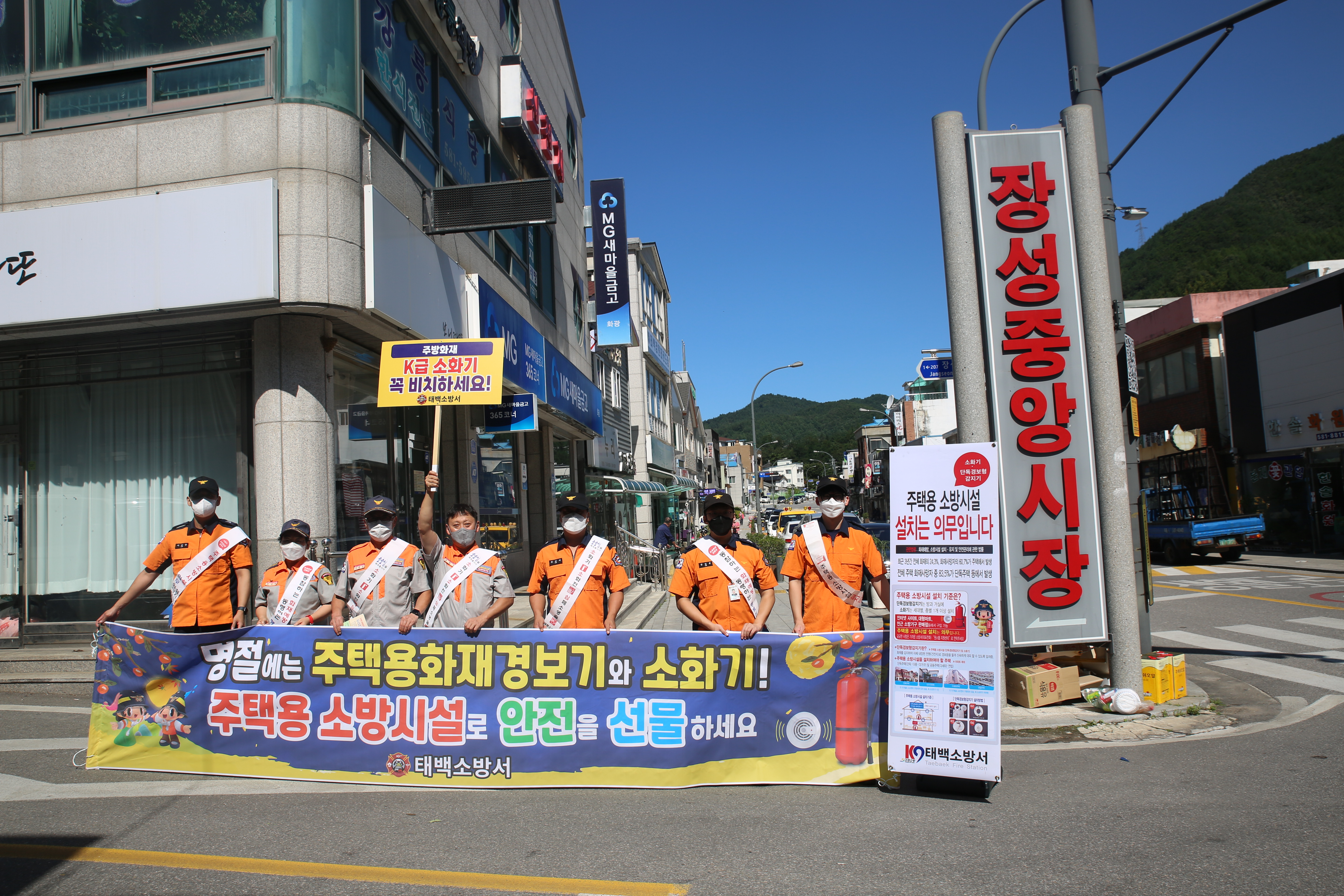 태백소방서(서장 김재석)는 7일 황지자유·장성중앙시장에서 다가오는 추석 연휴를 맞아 고향집에 주택용 소방시설 선물하기 홍보 캠페인을 실시했다고 밝혔다.