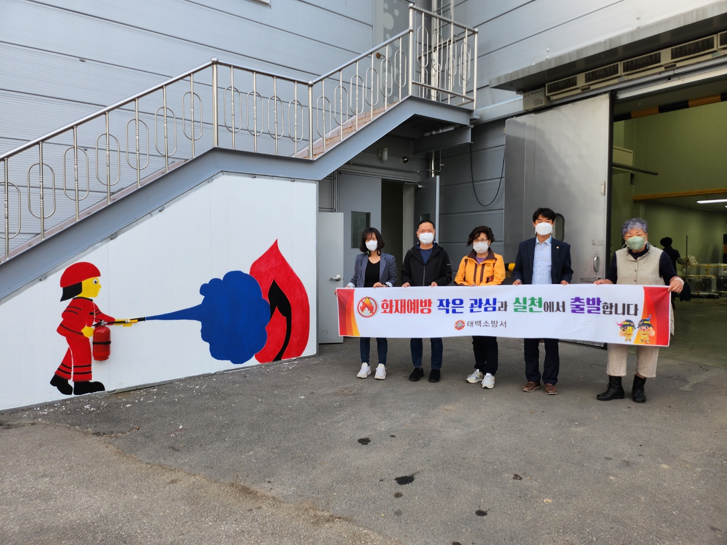 태백소방서(서장 김재석)는 지난 25일 태백농협농산물가공사업소에서 아태인 봉사단과 함께 일러스트를 설치했다고 밝혔다.