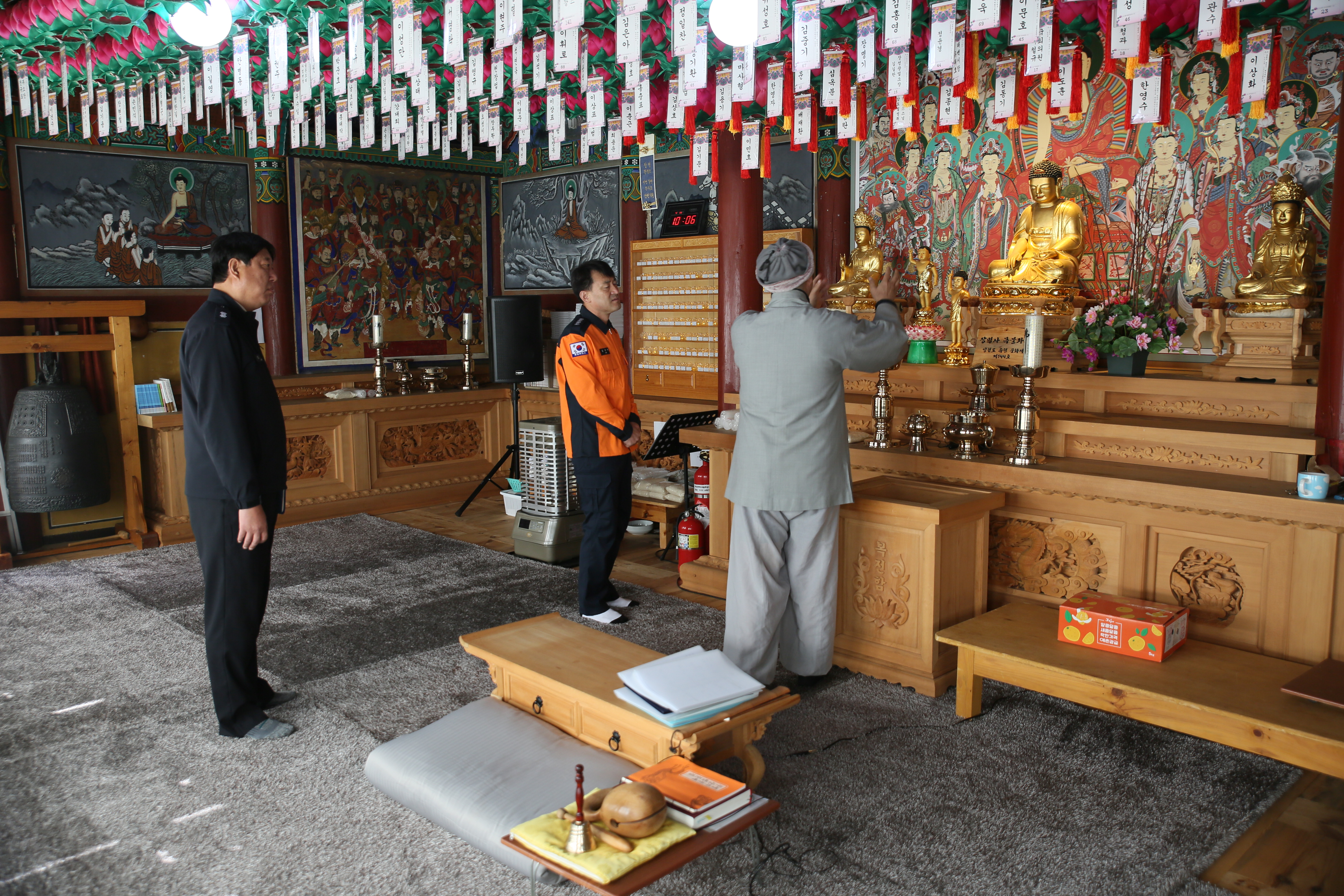 사찰ㆍ목조문화재는 대부분 산속에 있고 화재에 취약하다. 따라서 전기제품이나 촛불 등 취급 부주의로 화재가 발생하면 건물피해는 물론 대형 산불로 확대될 가능성이 매우 높다. 이에 소방서는 관계인에게 화재가 발생했을 때 초기 대응 요령과 인명 대피 유도 요령 등에 대해 교육했다.