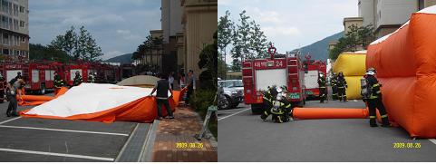 공기안전매트를 활용한 합동 소방훈련을 실시하였습니다.
