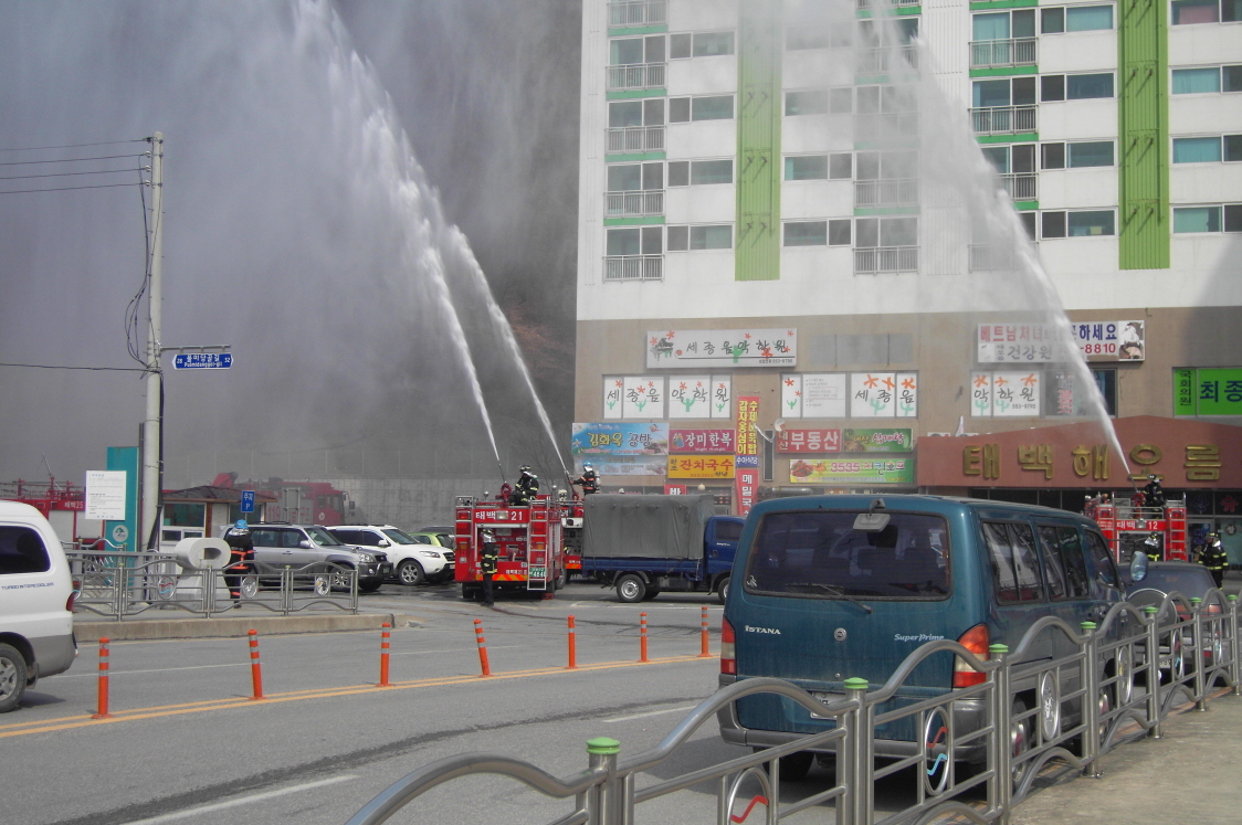 태백소방서(서장 여윤길)는 3.24(화)일 황지동 대산아파트에서 소방차 9대, 소방공무원 23명, 자위소방대 10여명이 참여한 가운데 ‘고층건물 합동소방 훈련’을 실시했다.