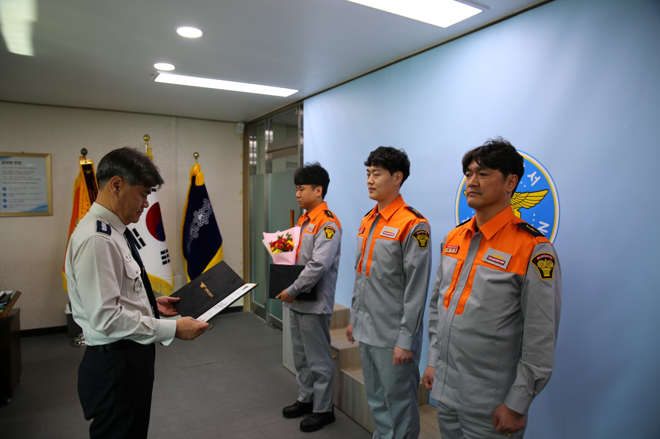 이날 행사에는 소방서장을 비롯해 과(단)장 3명, 의용소방대장 3명, 신규대원 3명 등 총 10명이 참석했다.