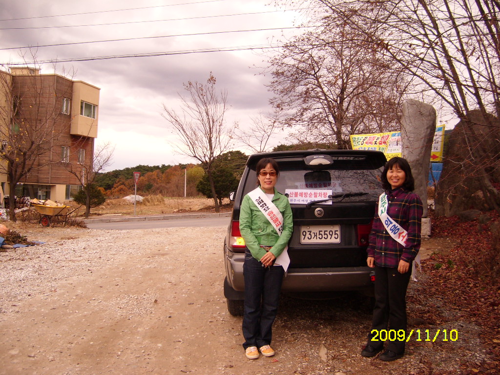 원주여성의용소방대에서는 2009년 11월1일부터 12월15일까지 45일간 이현자 대장님 지휘하에 오전10시부터 오후6시까지 산불예방활동을 하고 있습니다.