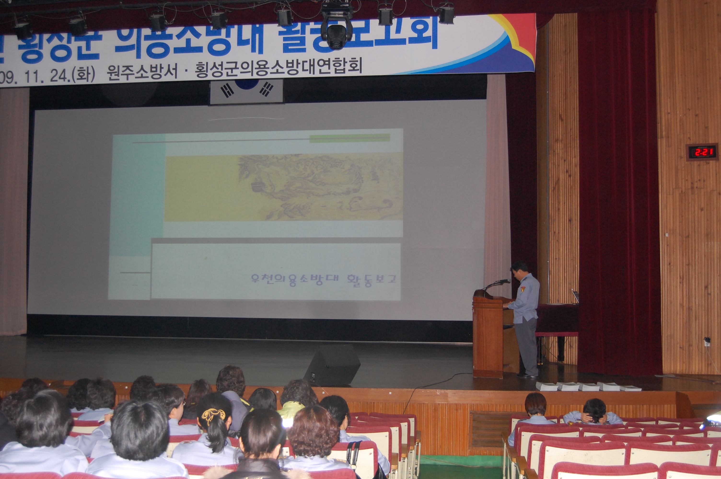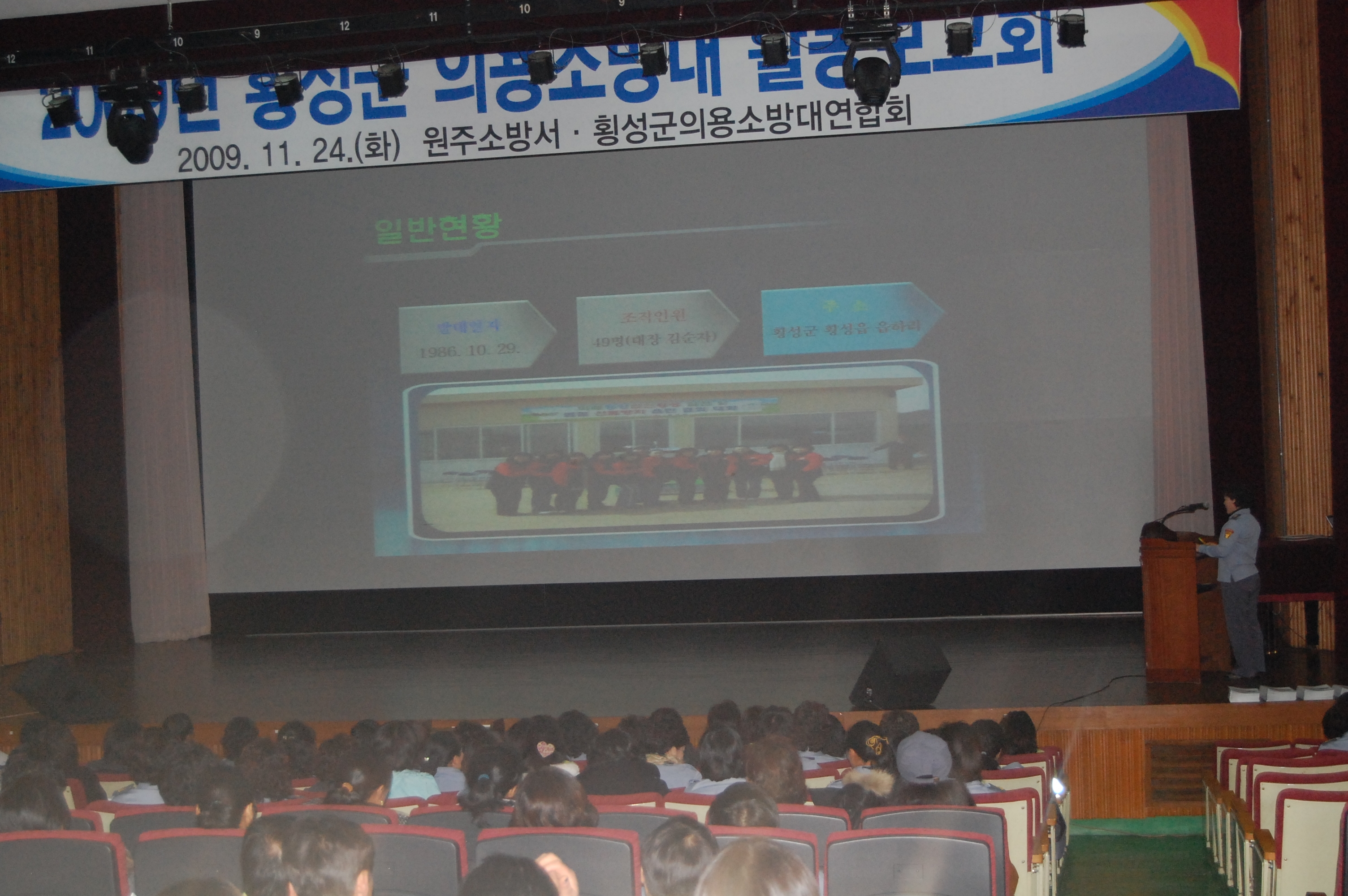 원주소방서(서장. 조근희), 횡성군의용소방대연합회(회장. 정재혁, 여성회장. 김순자) 주최로 개최된 2009년 횡성군 의용소방대 활동보고회가 성황리에 열렸습니다.