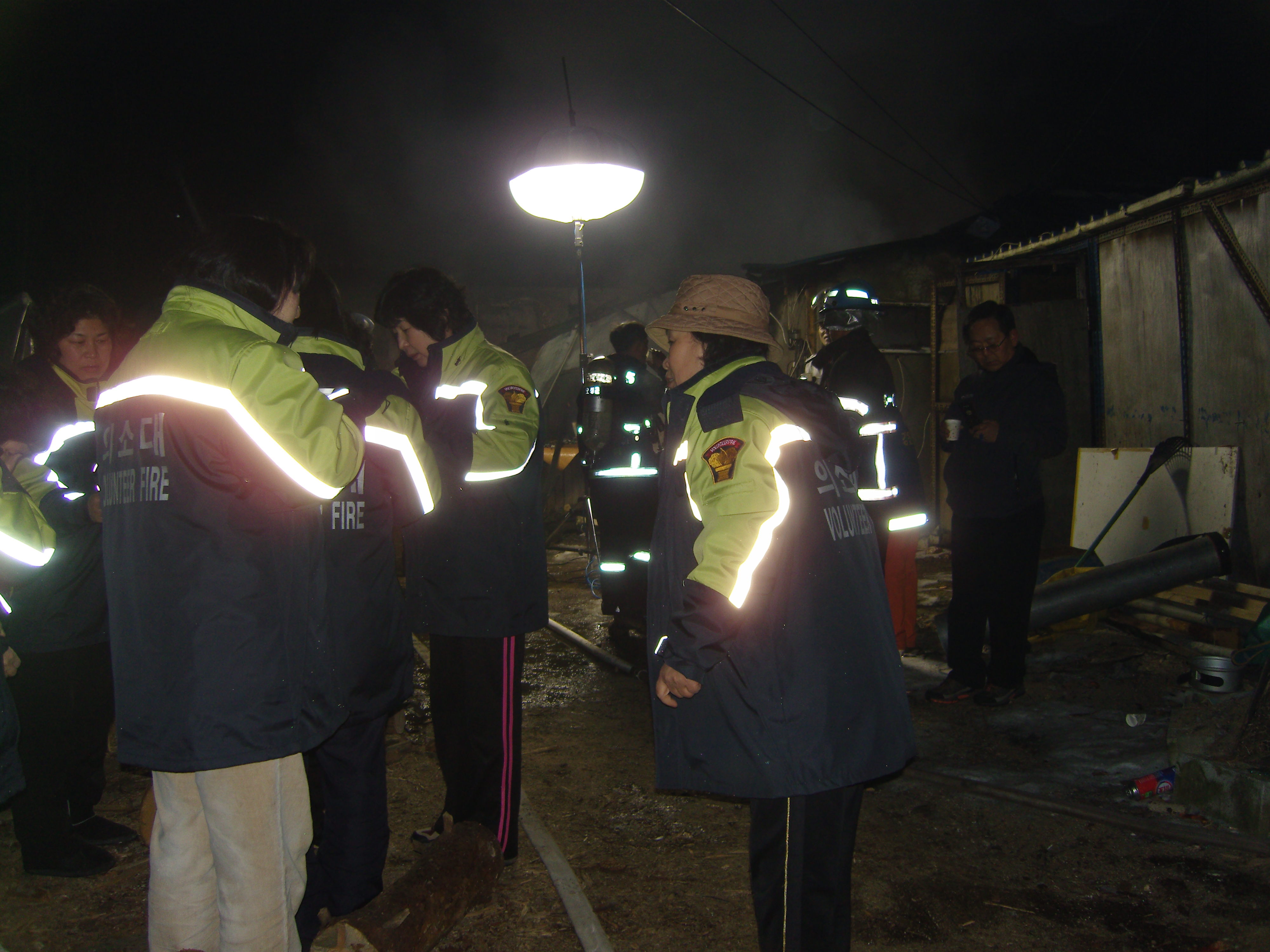 지난 1월25일 저녁 7시35분경 흥업3리 안밤골 한 주택에서 나무보일러 과열로화재가 나서 모두 전소되는 안타까운 일이 있었는데 흥업여성의용소방대(대장오오석)에서는 즉시 비상연락망을 취해 출동하였습니다 날씨가 몹시 추운데다가 밤중이라 진화하는데 어려움이 많았습니다. 저희 의소대에선 진화 하시는 소방관님들을 비롯하여 진화하기위해 나오신 동네분들에게 따뜻한 음료배식을 해 드렸습니다 이 추운 겨울날한순간에 모든것을 잃어버린 당사자는 망연자실한체 몸을 떨고 계셨습니다.참 어처구니없는 현실앞에 눈물이 났죠...슬픔을 나누면 반으로 줄고 기쁨을 나누면 두배가 된다고 하죠? 대원님들의 많은 관심과 배려 부탁드립니다 아울러 다시한번 화재예방에 각별히 신경들을 쓰셔야 할듯합니다..