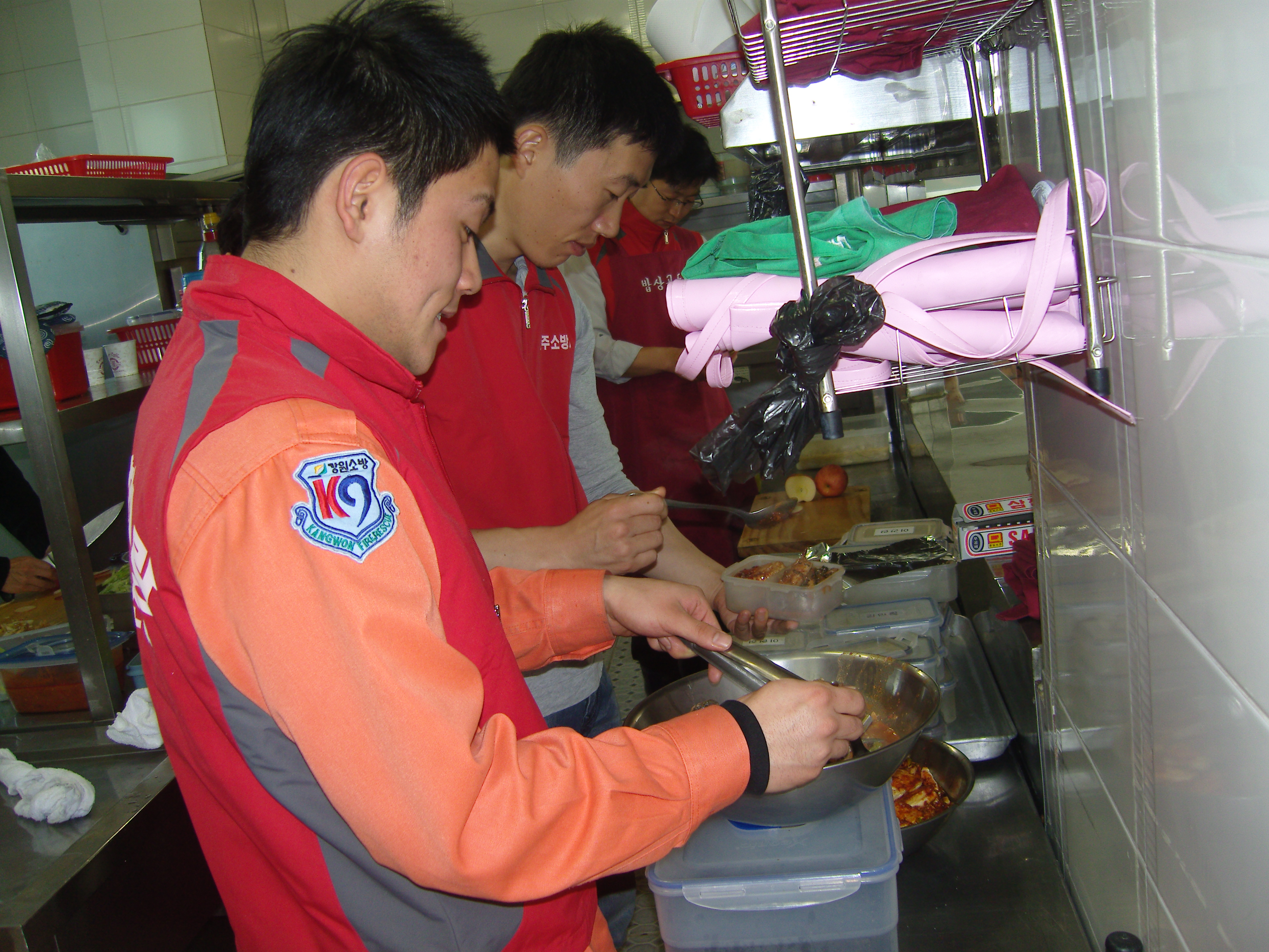 소방서 대원및 직원들과 같이 뚝딱 뚝딱 지지고 볶고 조금은 서툰 모습도 있었지만.,