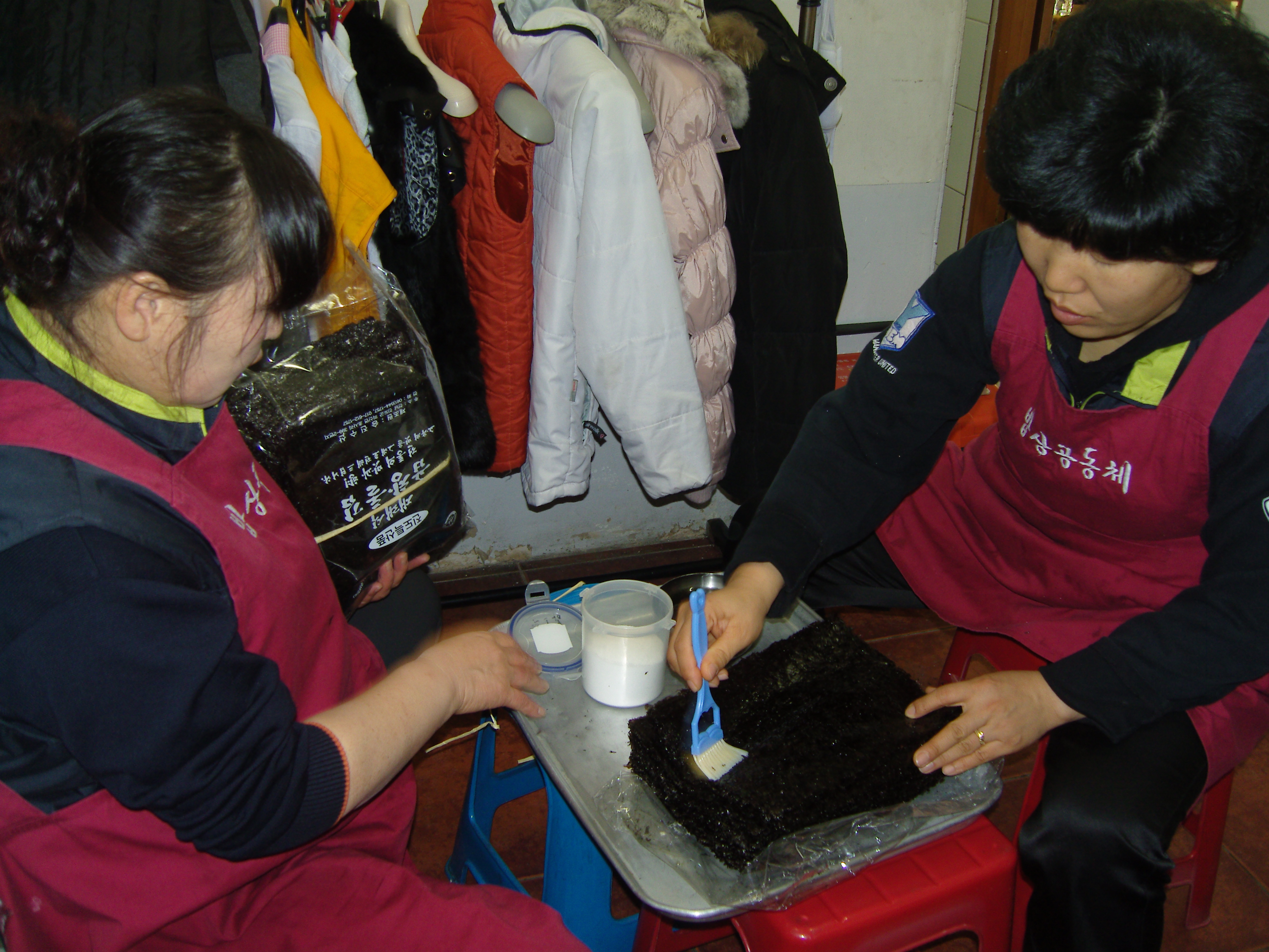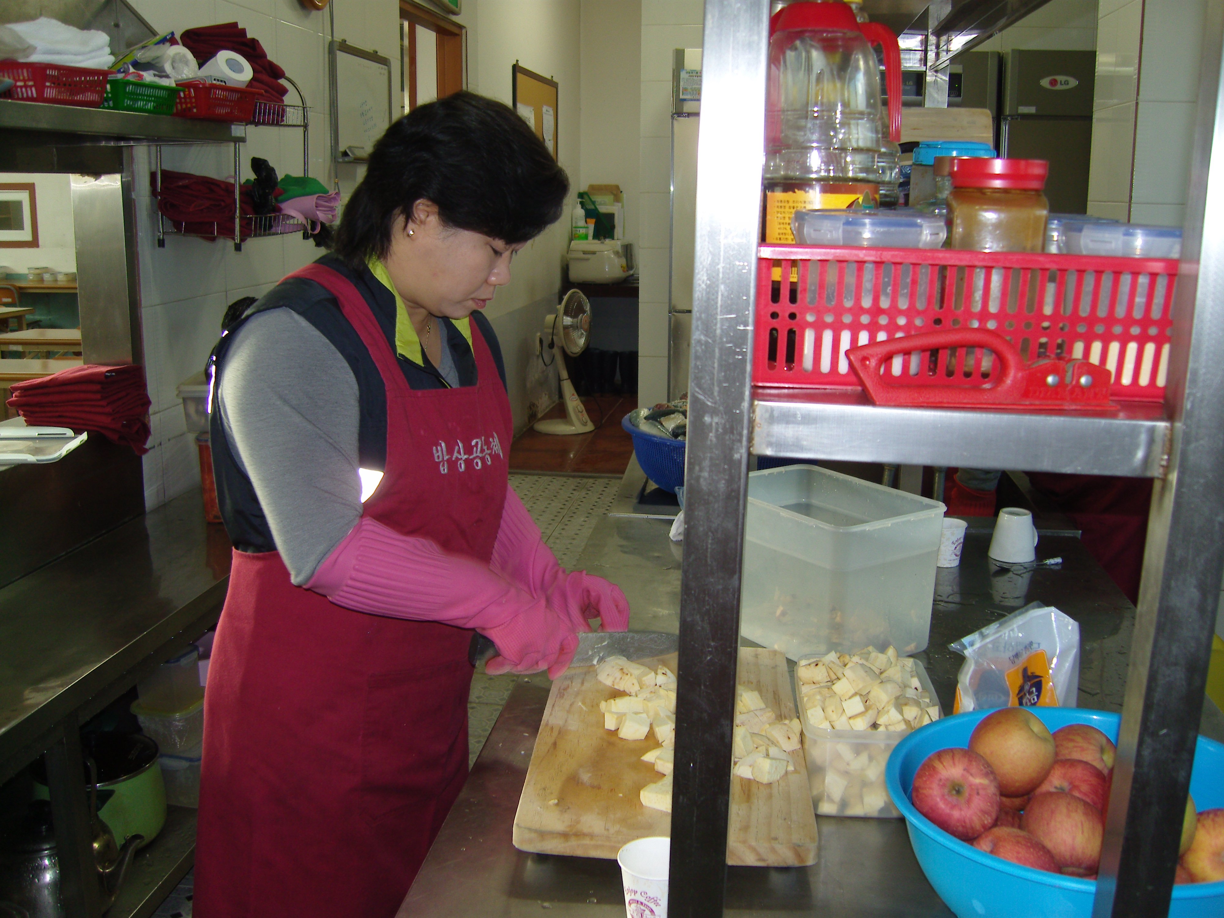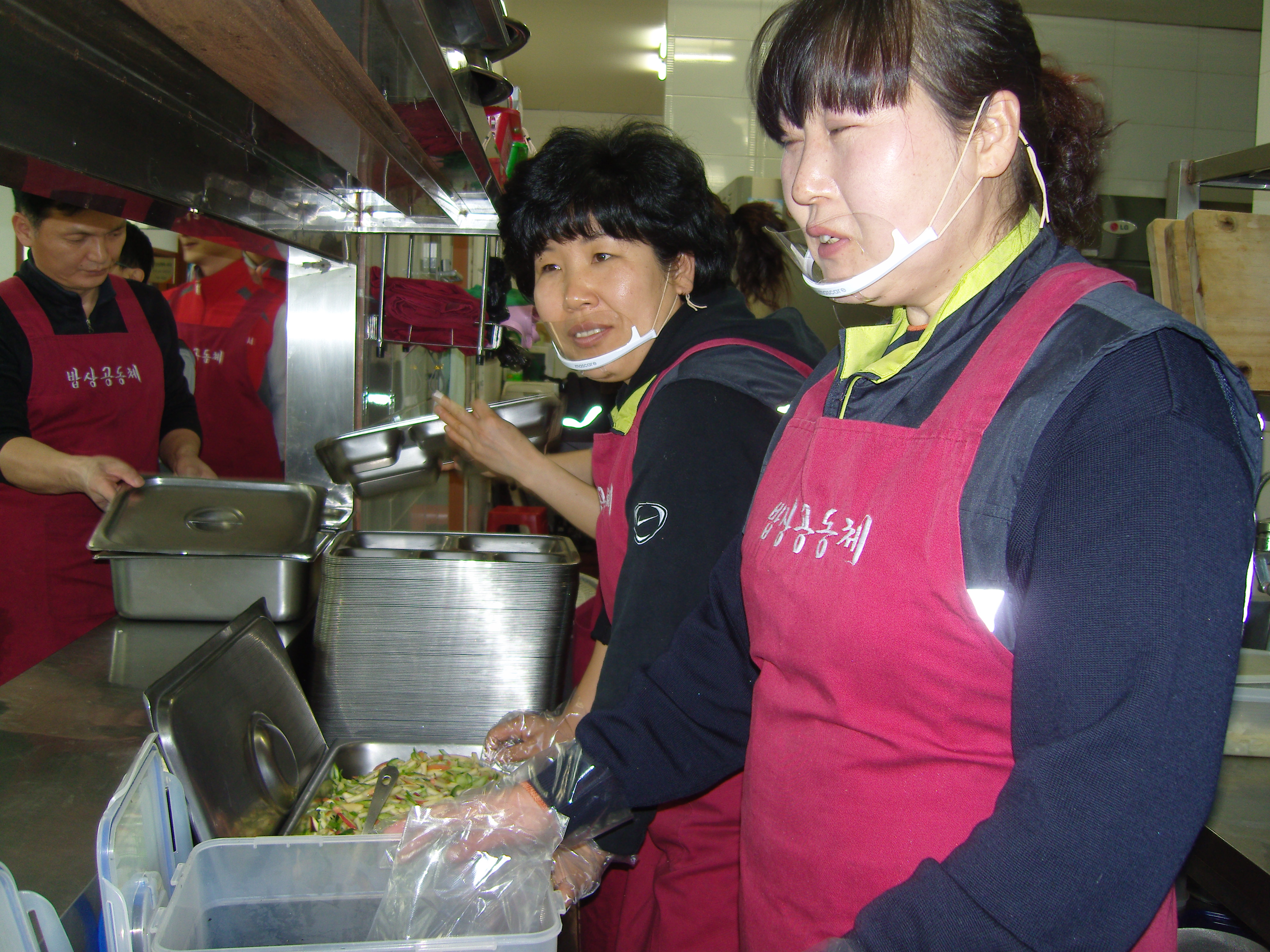 질서정연하게 밥과 국 반찬을 담아드리고 또 배급을 하고 다시 깨끗히 치우고 청소하는