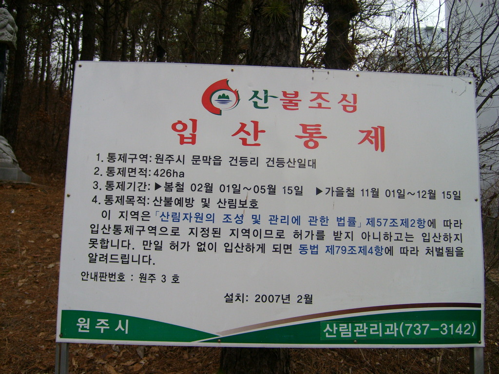 어느곳이나 입산통제가 있습니다.