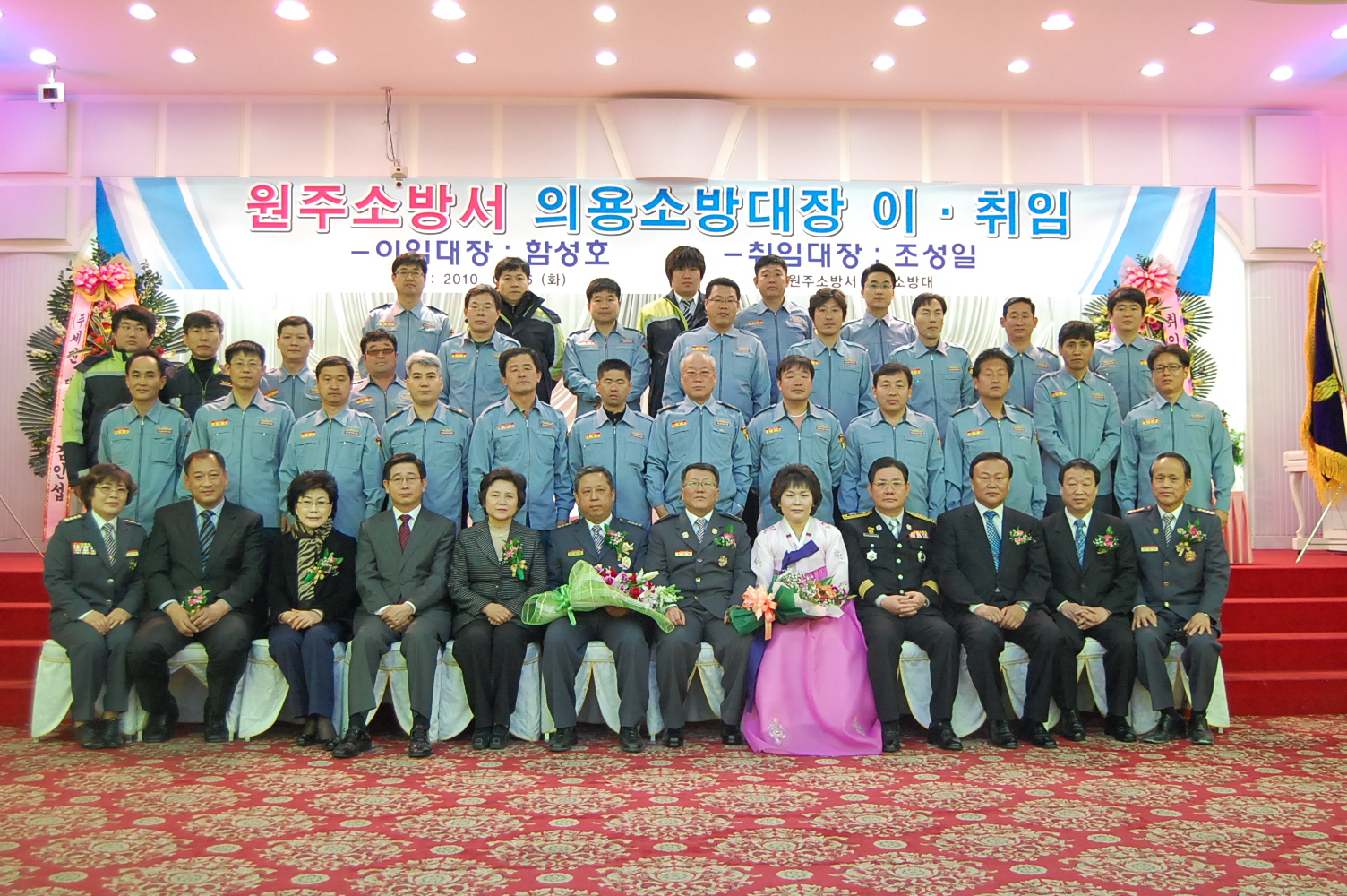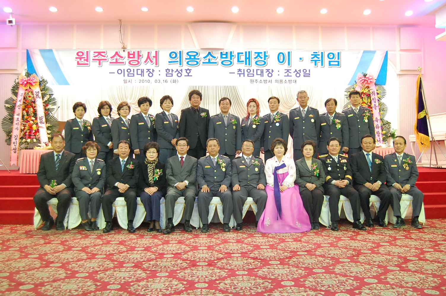 2010년 3월 16일 11시 개운동 중앙웨딩홀에서 원주소방서(서장.조근희) 의용소방대장 이취임식이 열렸습니다.